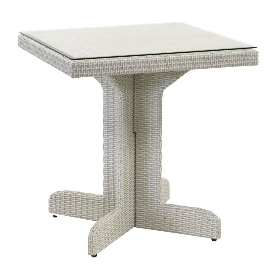 Tavolo da giardino in polyrattan con piano in vetro colore bianco cm 70x70x75h