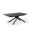 Tavolo allungabile per sala pranzo o soggiorno, piacevole grazie alla struttura con gambe incrociate realizzate in metallo colore bianco. Non solo esteticamente ricercato, il nostro tavolo design presenta un pratico piano realizzato in legno colore grigio scuro, con 2 prolunghe da cm 50 alloggiate sotto il piano.