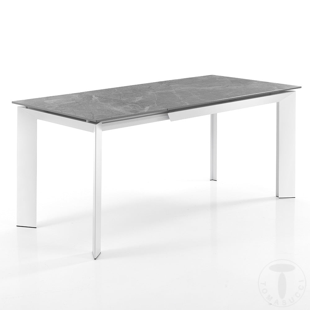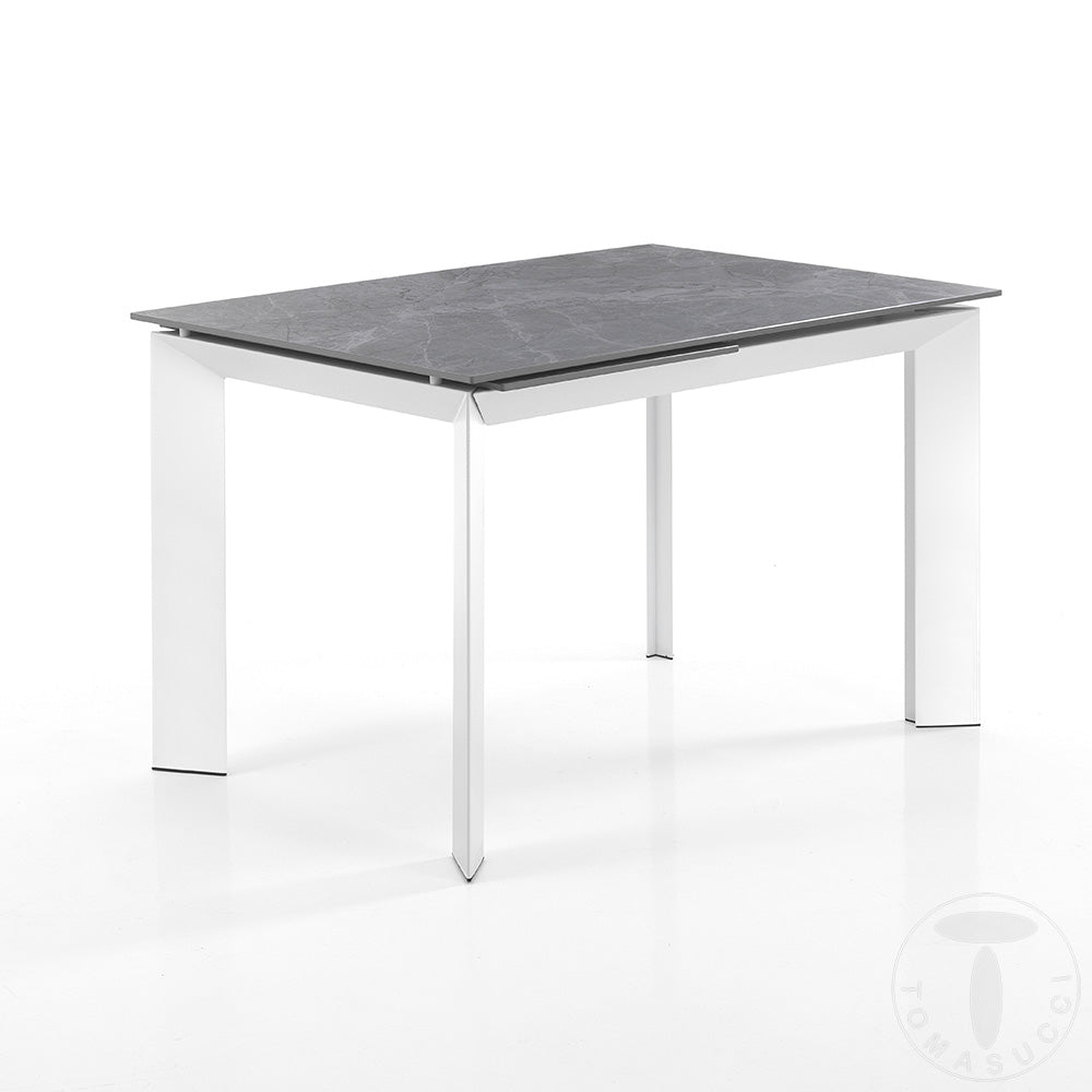 Tavolo da pranzo allungabile in metallo piano in ceramica finitura marmo cm 120/170x80x76h