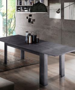 Tavolo da pranzo allungabile, in legno, stile moderno. La struttura si può scegliere tra il colore bianco lucido, cemento, bianco larice, ossido, bianco cemento o olmo. Perfetto per arredare il vostro ambiente con modernità e raffinatezza, grazie a questo tavolo novità Made in Italy.