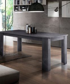 Tavolo da pranzo allungabile, in legno, stile moderno. La struttura si può scegliere tra il colore bianco lucido, cemento, bianco larice, ossido, bianco cemento o olmo. Perfetto per arredare il vostro ambiente con modernità e raffinatezza, grazie a questo tavolo novità Made in Italy.