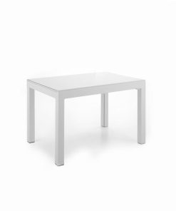 Tavolo moderno allungabile da cm 120 composto da solida struttura in metallo bianco ed elegante piano in vetro bianco extrawhite. Il tavolo da pranzo offre la possibilità di allungarsi fino a cm 350, fornito di due allunghe interne in vetro riposte sotto il piano e due allunghe aggiuntive esterne in legno verniciato bianco.