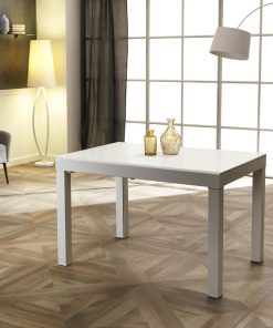 Tavolo moderno allungabile da cm 120 composto da solida struttura in metallo bianco ed elegante piano in vetro bianco extrawhite. Il tavolo da pranzo offre la possibilità di allungarsi fino a cm 350, fornito di due allunghe interne in vetro riposte sotto il piano e due allunghe aggiuntive esterne in legno verniciato bianco.