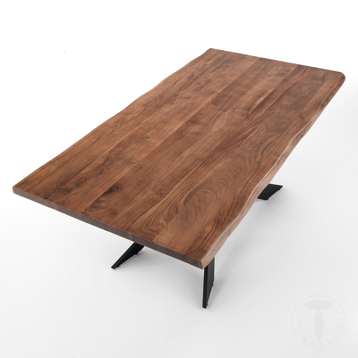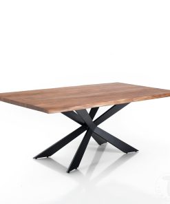 Tavolo fisso per soggiorni di stile moderno o industrial, da accostare con elementi in legno e metallo e adatto non solo in soggiorno ma in qualunque ambiente. La struttura viene realizzata in acciaio di colore nero opaco mentre il piano di appoggio vede comporsi con un pregiato legno massello di acacia dalla colorazione naturale stupefacente. La composizione risulta essere di alta qualità oltre che meravigliosa ed elegante, e sistemarla nel tuo soggiorno non può far altro che portare tanta giovinezza, modernità e luminosità nell’ambiente.
