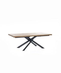 Affascinante tavolo da salotto fisso, un modo per incantare i tuoi ospiti con un tavolo alla moda e ricercato. La struttura si presenta con gambe incrociate in metallo che potrai acquistare in nero o bianco, il piano abbinato è realizzato in legno rovere, una finitura che conserva la bellezza naturale del legno.