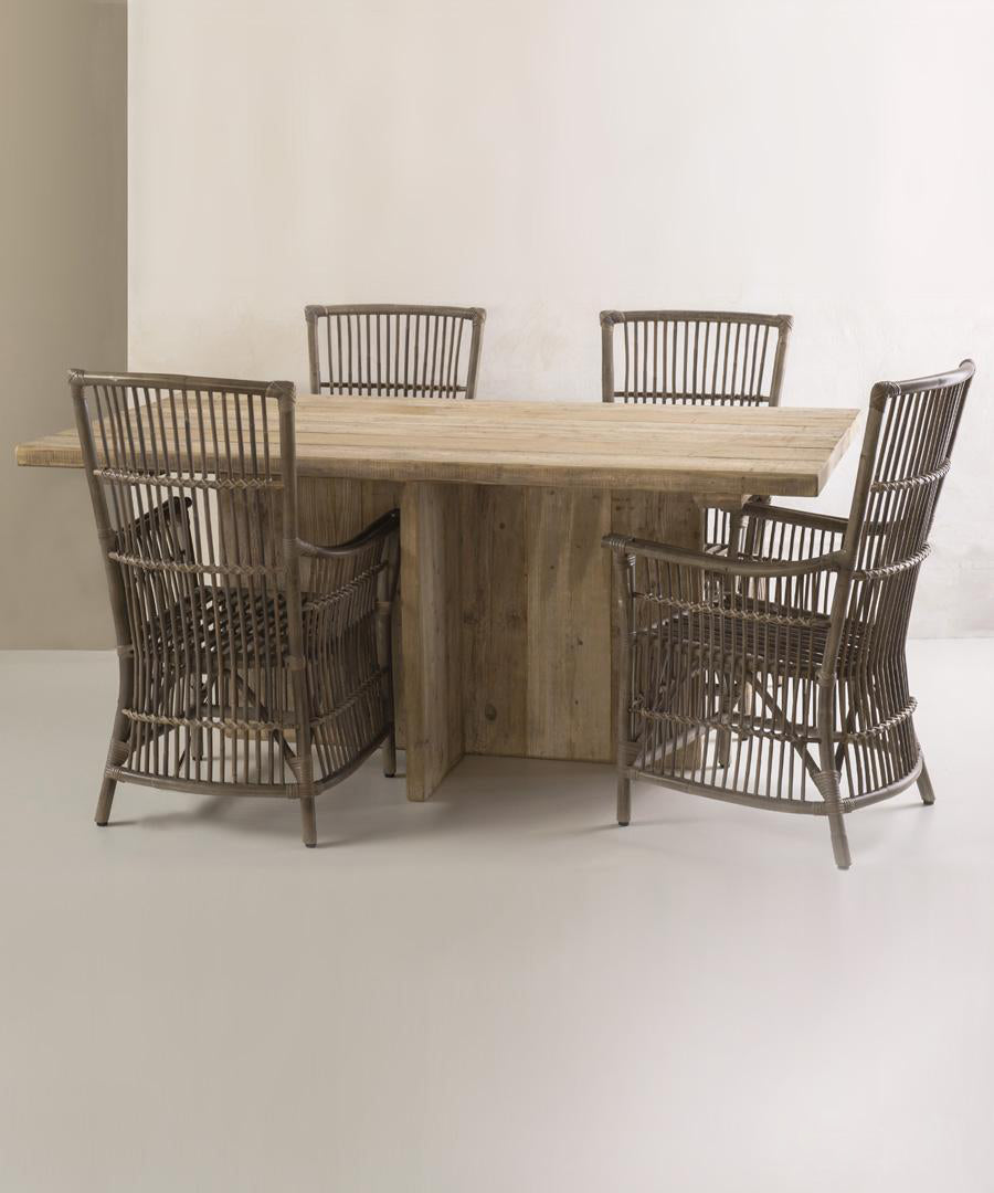 Il tavolo da pranzo esibisce un caratteristico stile rustico e grezzo, perfetto per chi ama riprodurre il calore dell’arredamento rurale, da impiegare in mille modi, prestandosi a soluzioni creative, associando una sedia naturale in rattan o in legno.