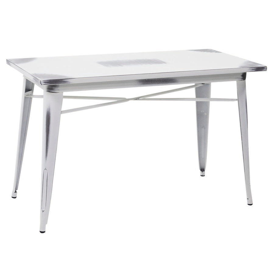Tavolo stile industrial in ferro, disponibili nei colori bianco e azzurro, con effetto anticato.