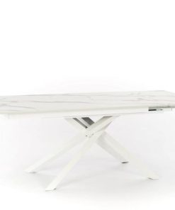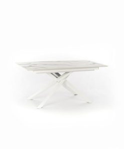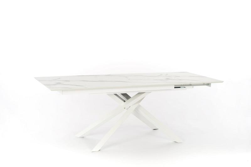 Tavolo allungabile da pranzo da cm 170 a cm 270, un modello dalla raffinatezza ineguagliabile, dal momento che il bianco e le venature del piano genera un aspetto estremamente fine ed elegante. Le gambe incrociate realizzate in metallo, sono in linea con uno stile alla moda, un’alternativa diffusa della tradizionale struttura a 4 gambe d’appoggio.