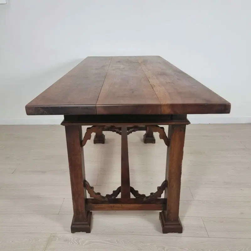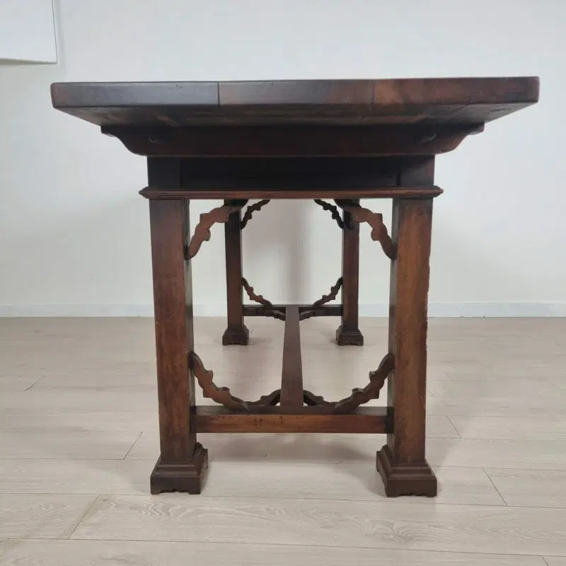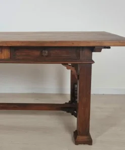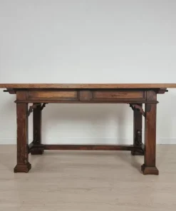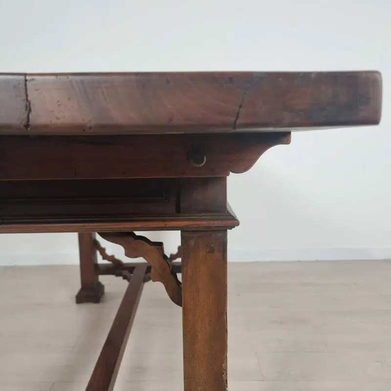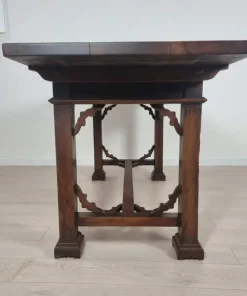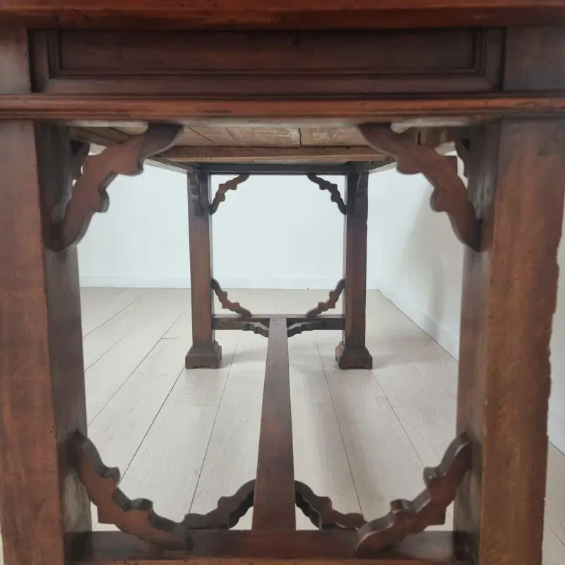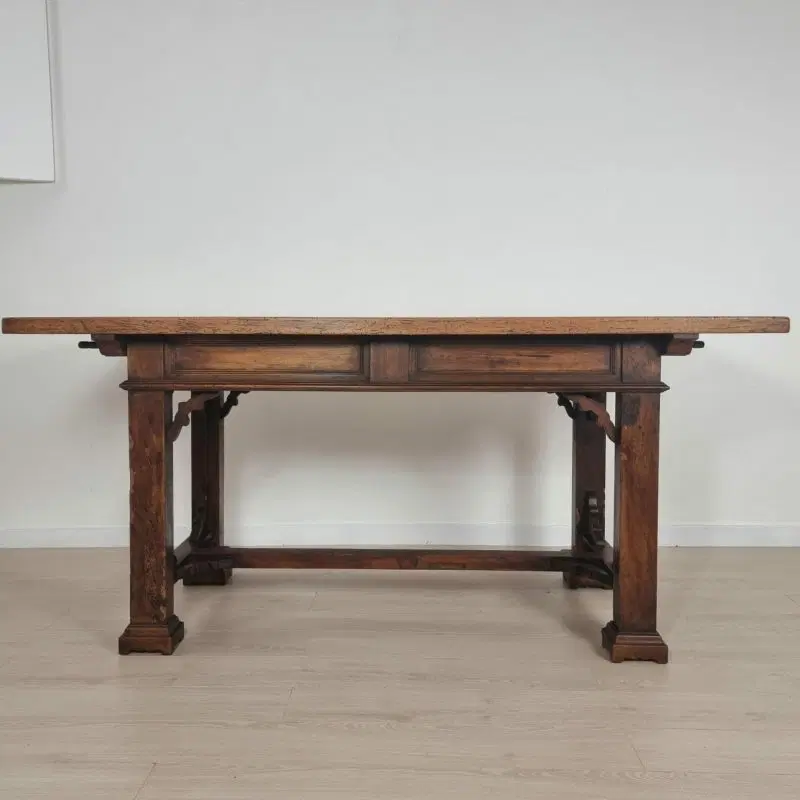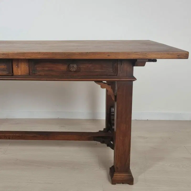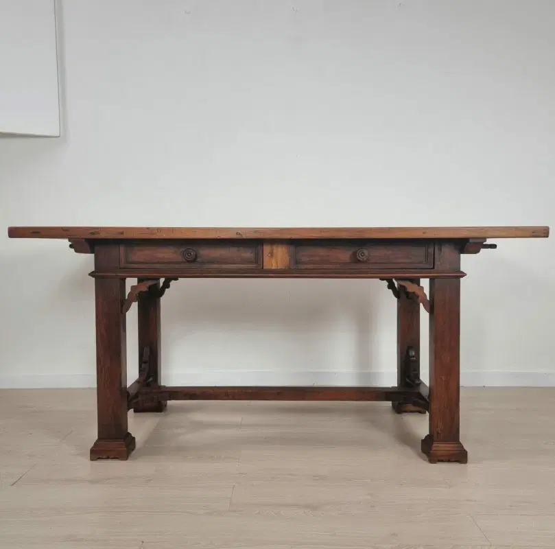 Tavolo con cassetti in legno di noce e olmo in stile Neorinascimentale primi ‘900.