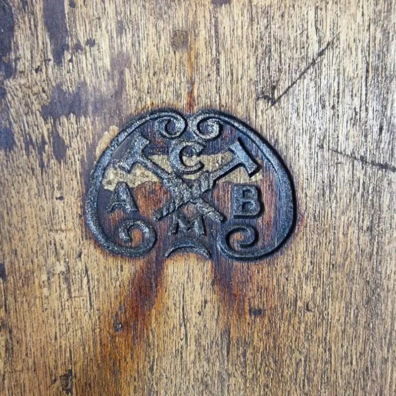Reca il marchio a fuoco di una antica falegnameria Modenese ,in ogni elemento che costituisce il manufatto