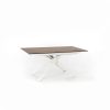 La bellezza del nostro tavolo design si concentra sul piano realizzato in ceramica e vetro con finitura effetto marmo. A questo, si accompagna la base in metallo con gambe a doppia X incrociata che realizzano un design caratteristico e un solido basamento d’appoggio.