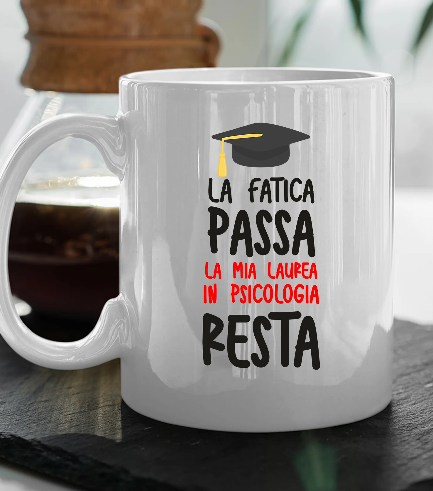Tazza Laurea Uomo La fatica passa, la mia laurea in Psicologia resta tazza mug laureato divertente Regalo Laurea