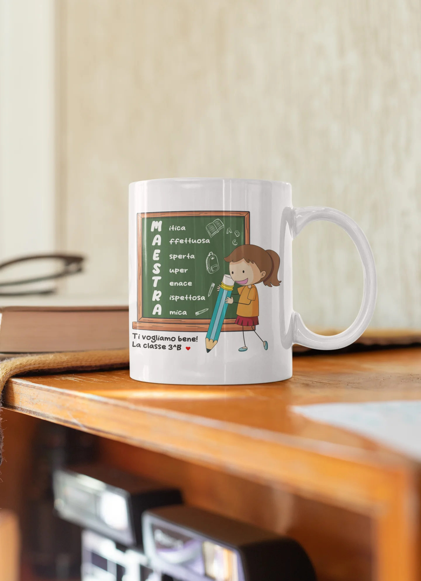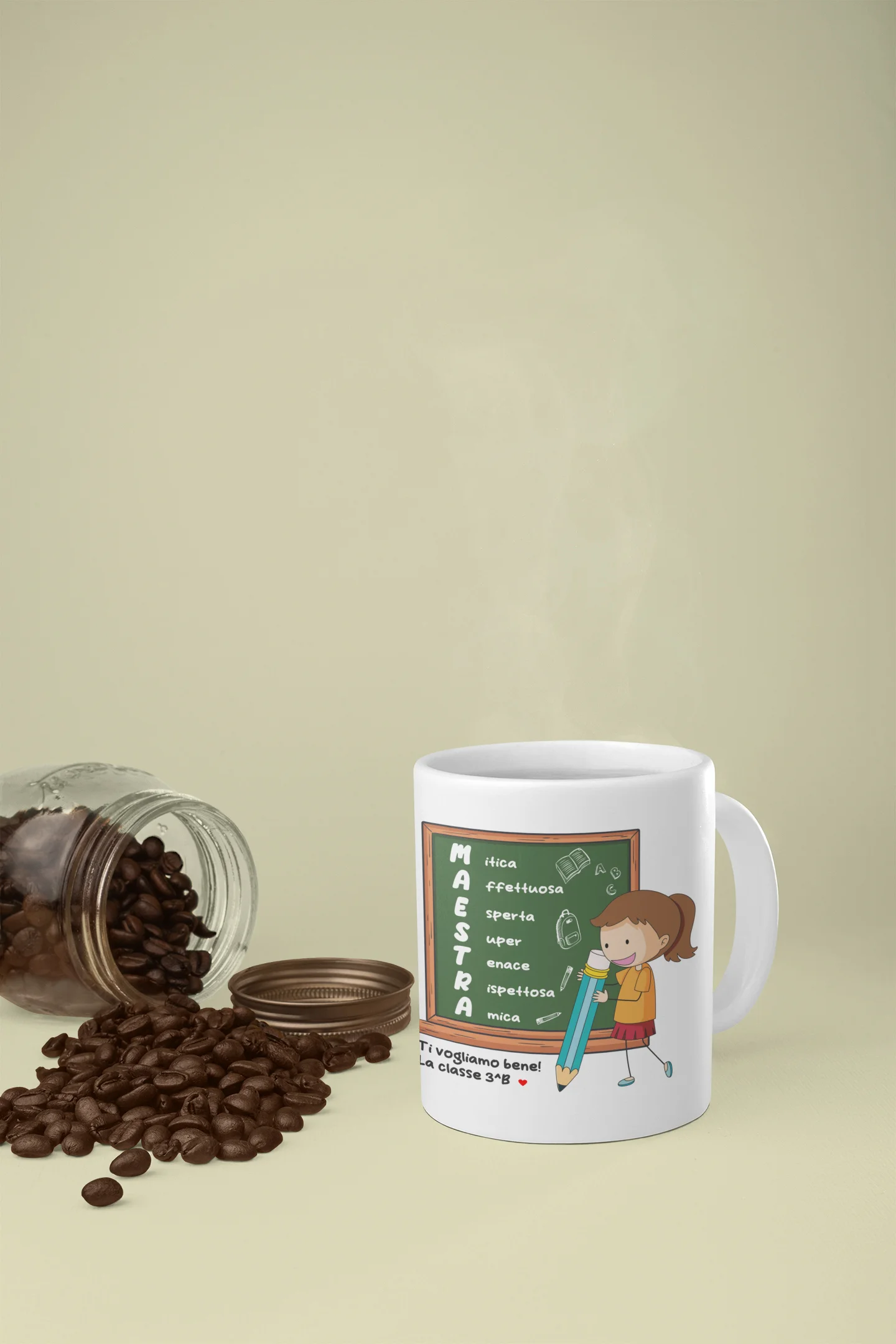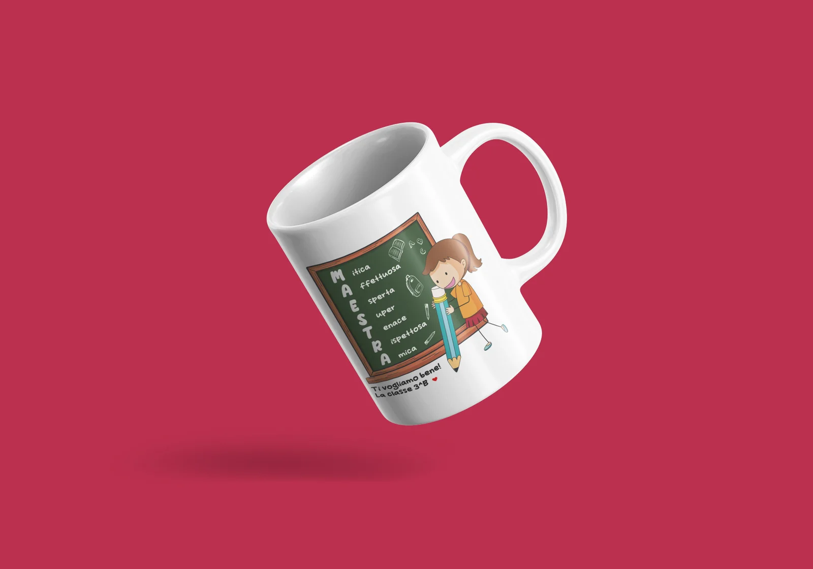 TAZZA MUG IN CERAMICA: Simpatica e divertente tazza mug in ceramica, ideale per festeggiare la fine dell’anno scolastico e sorprendere la propria maestra o quella dei propri figli in maniera unica e originale.