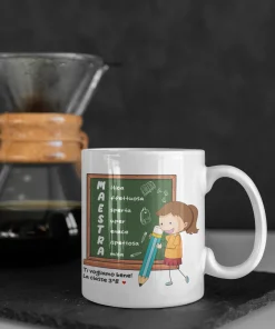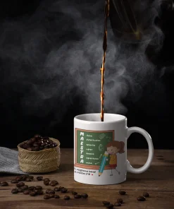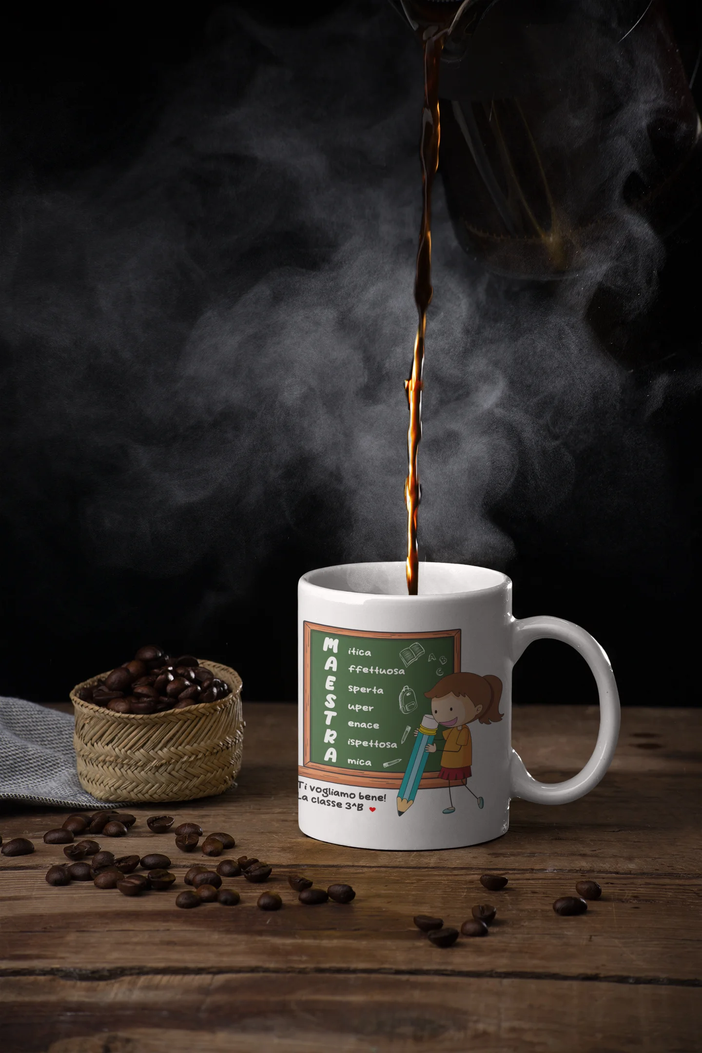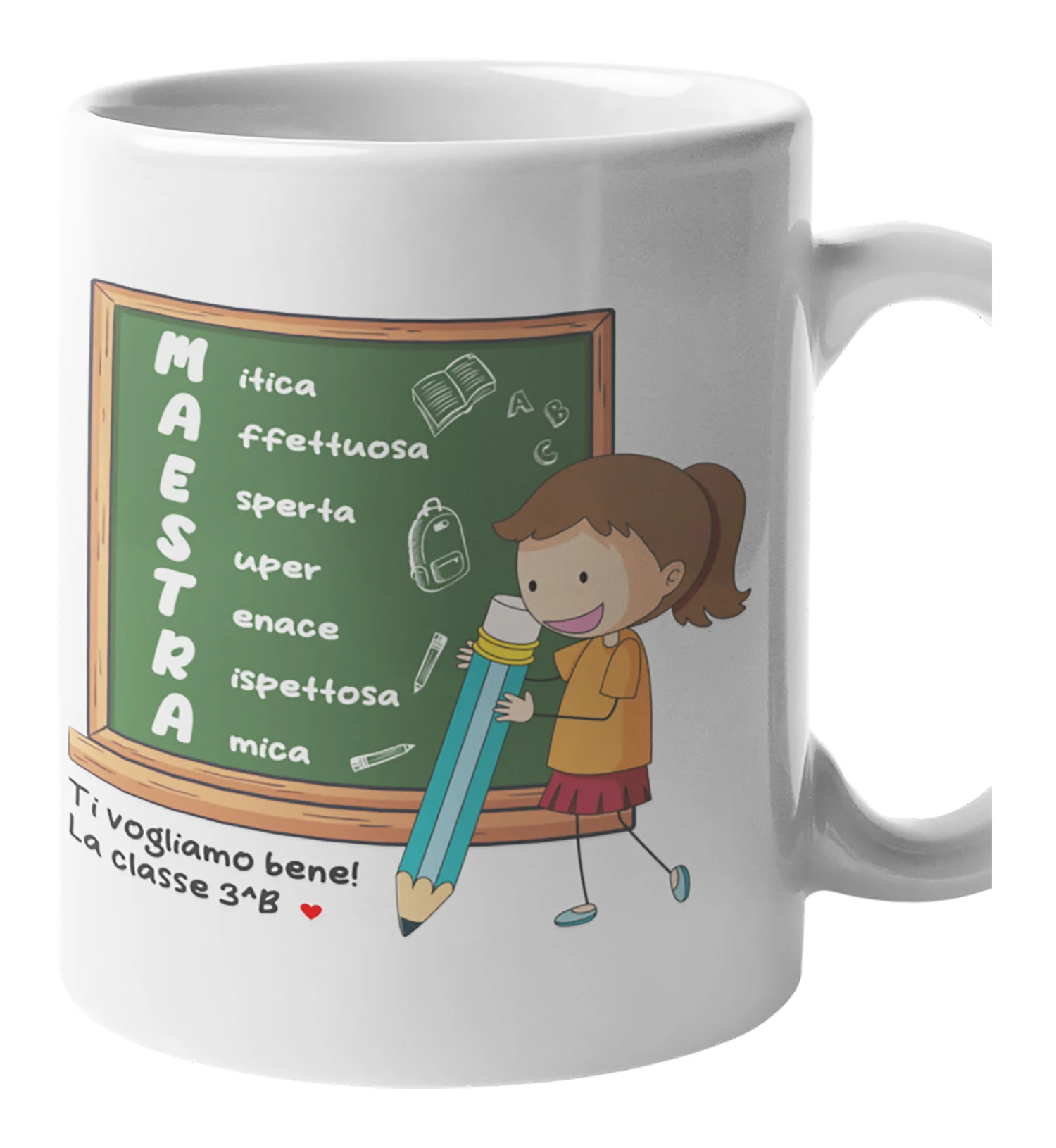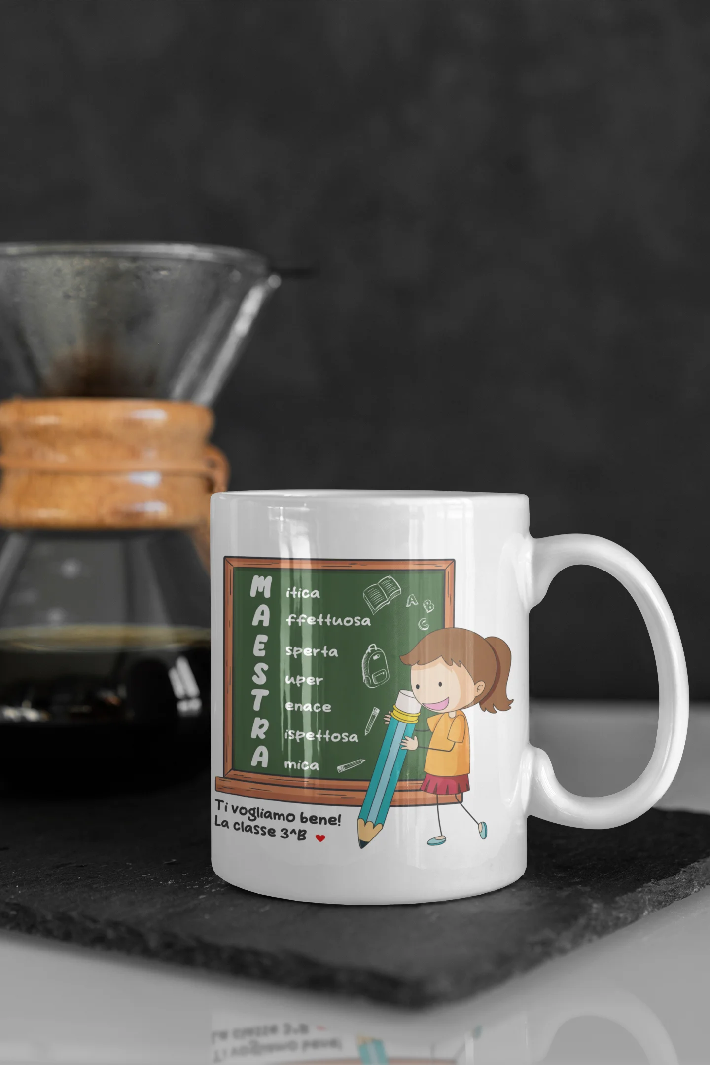 TAZZA MUG IN CERAMICA: Simpatica e divertente tazza mug in ceramica, ideale per festeggiare la fine dell’anno scolastico e sorprendere la propria maestra o quella dei propri figli in maniera unica e originale.