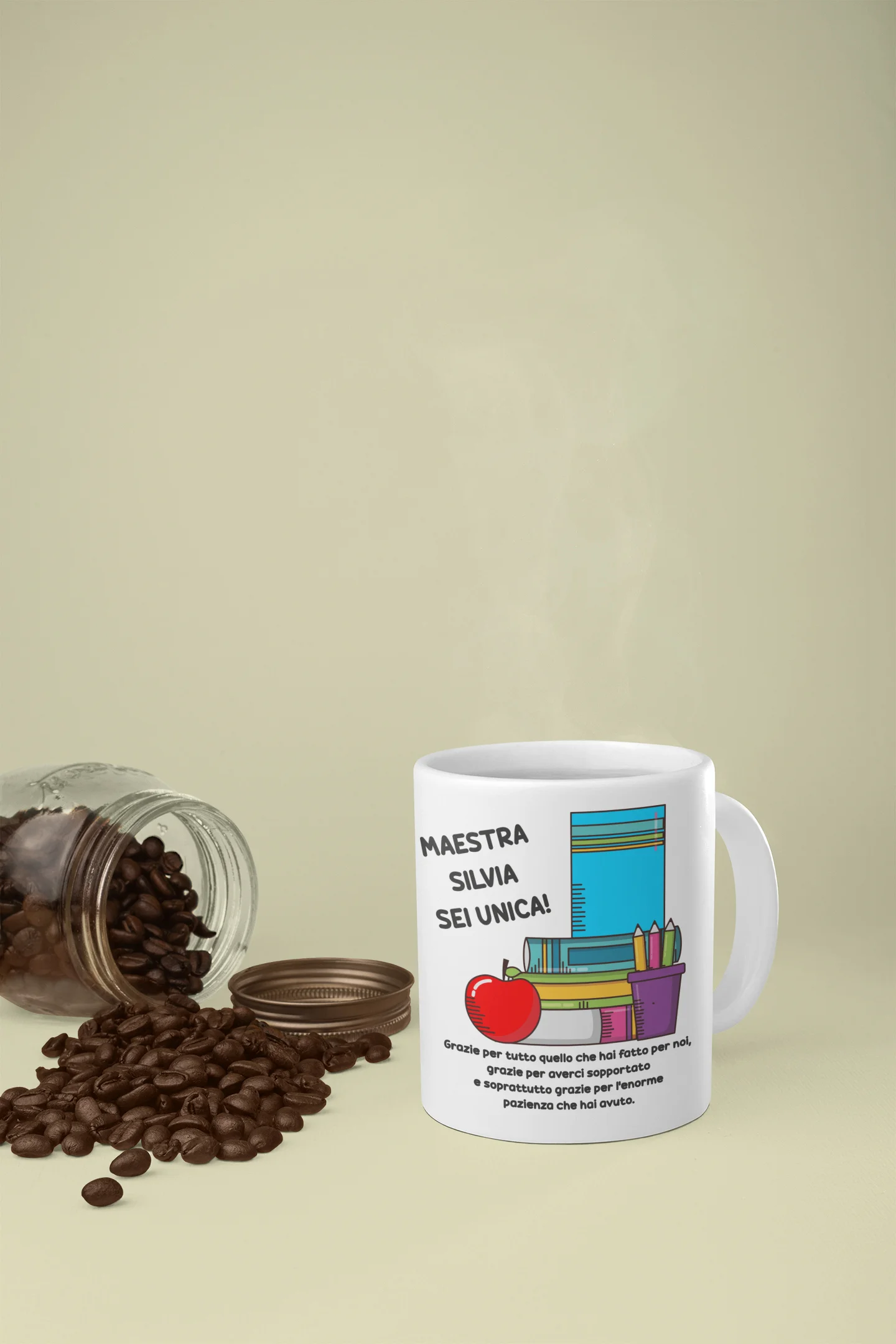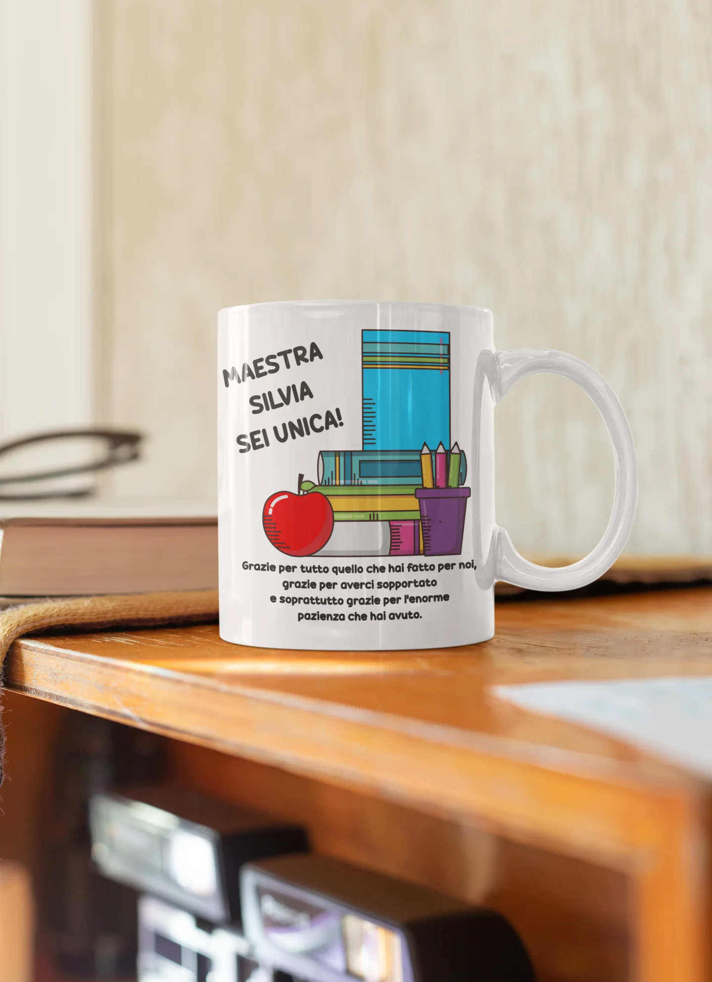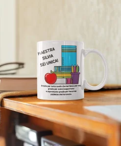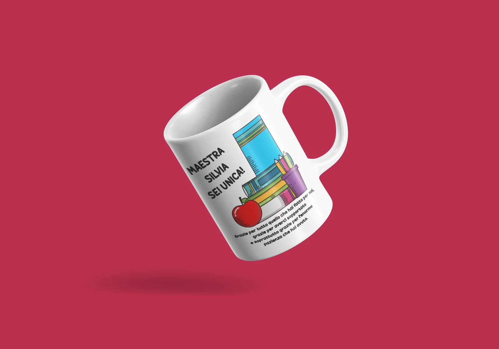 TAZZA MUG IN CERAMICA: Simpatica e divertente tazza mug in ceramica, ideale per festeggiare la fine dell’anno scolastico e sorprendere la propria maestra o quella dei propri figli in maniera unica e originale.