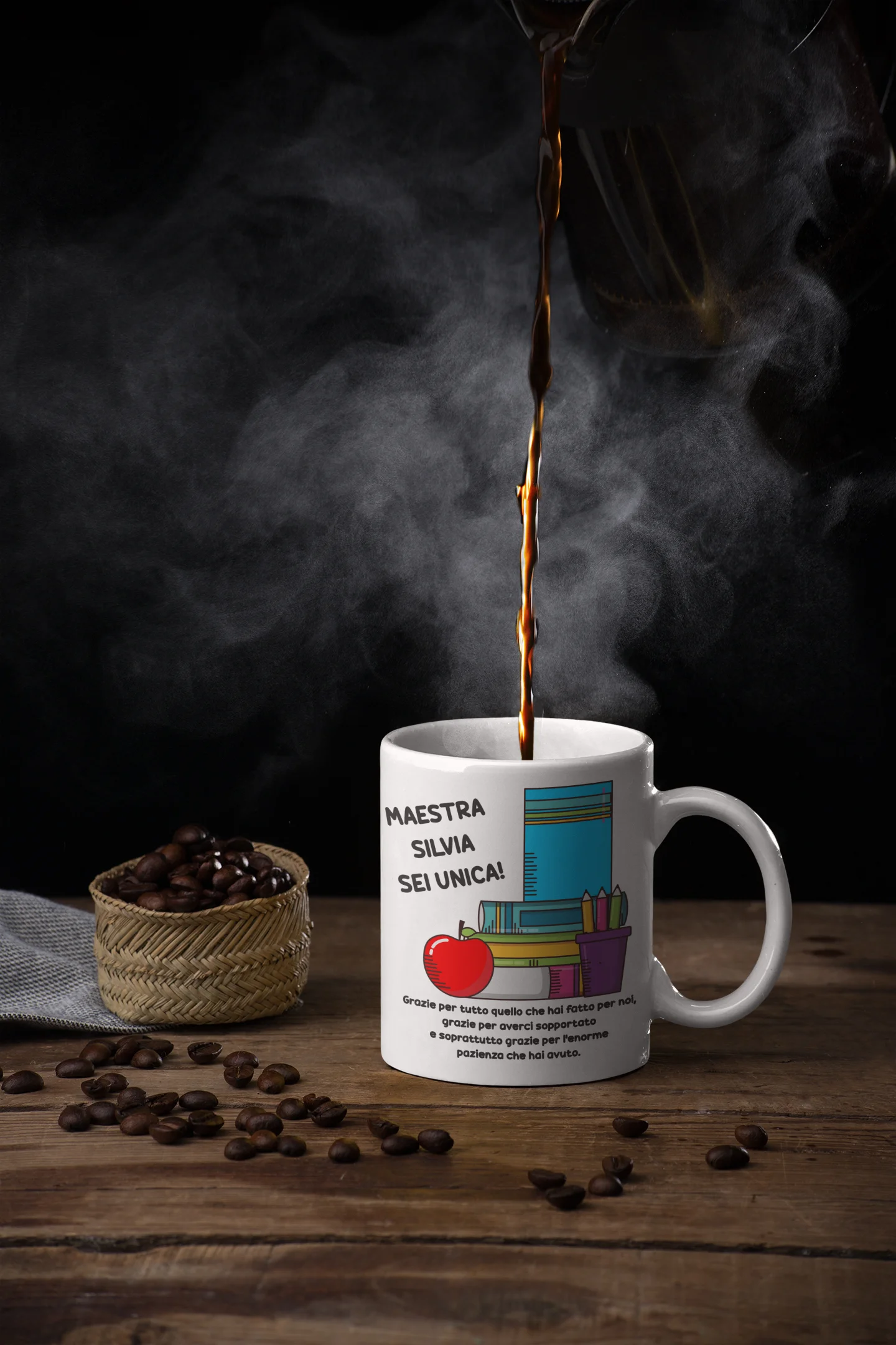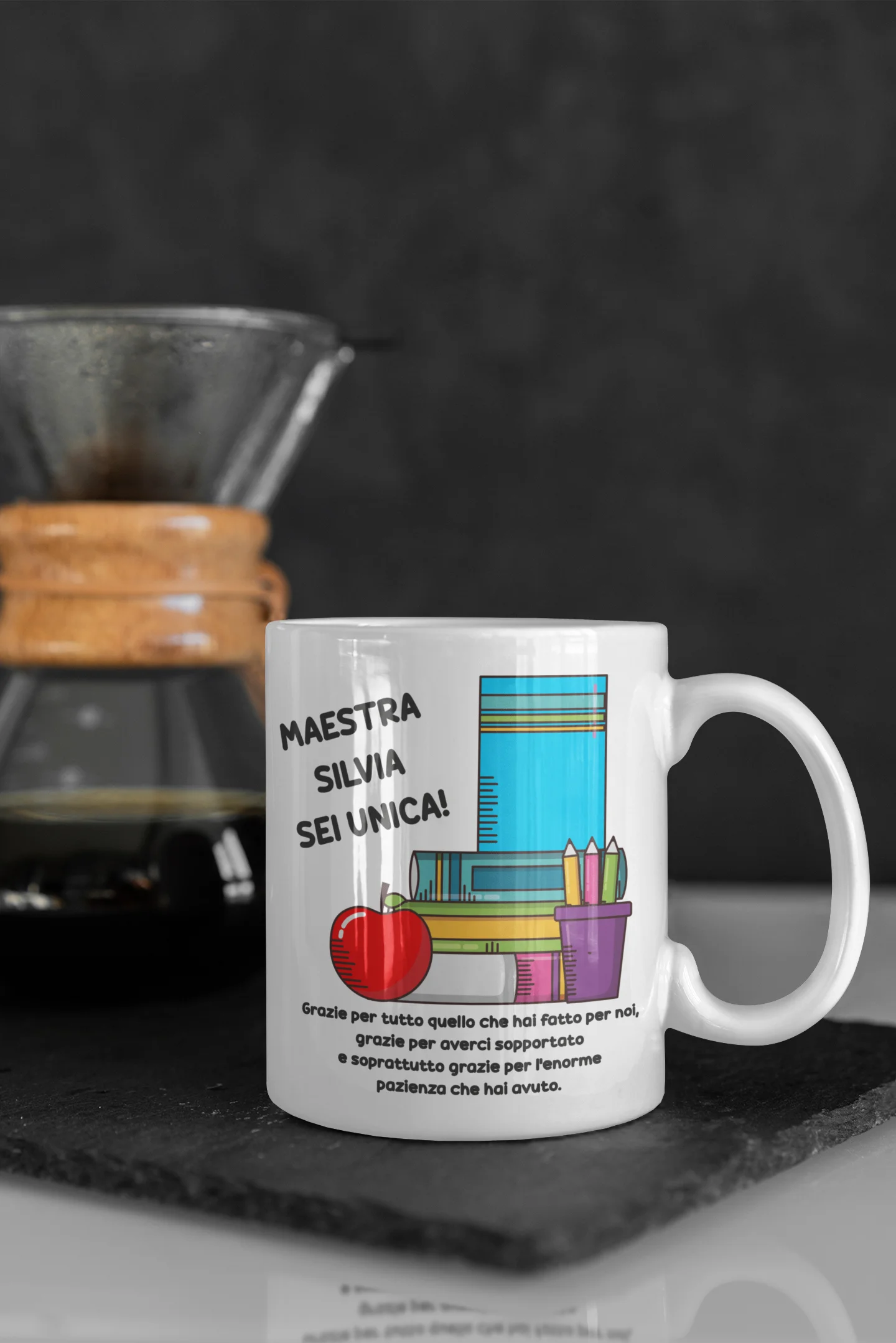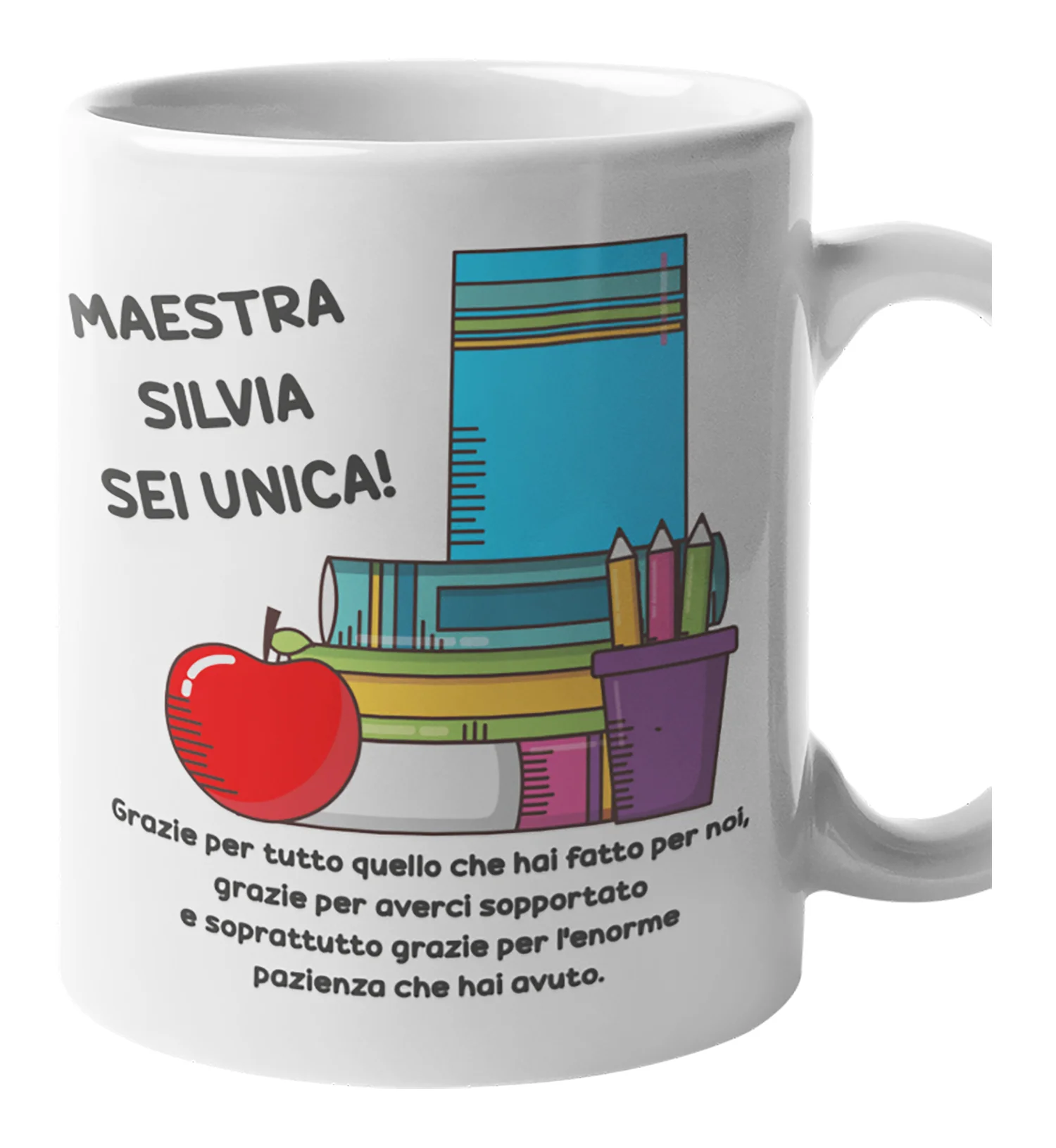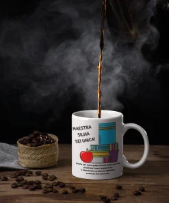 TAZZA MUG IN CERAMICA: Simpatica e divertente tazza mug in ceramica, ideale per festeggiare la fine dell’anno scolastico e sorprendere la propria maestra o quella dei propri figli in maniera unica e originale.