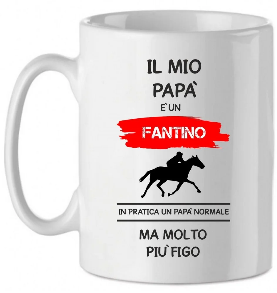 Tazza Mug in Ceramica Festa del papà Il mio papà è un fantino in pratica un papà normale ma molto più bello – happy father’s day – love – idea regalo