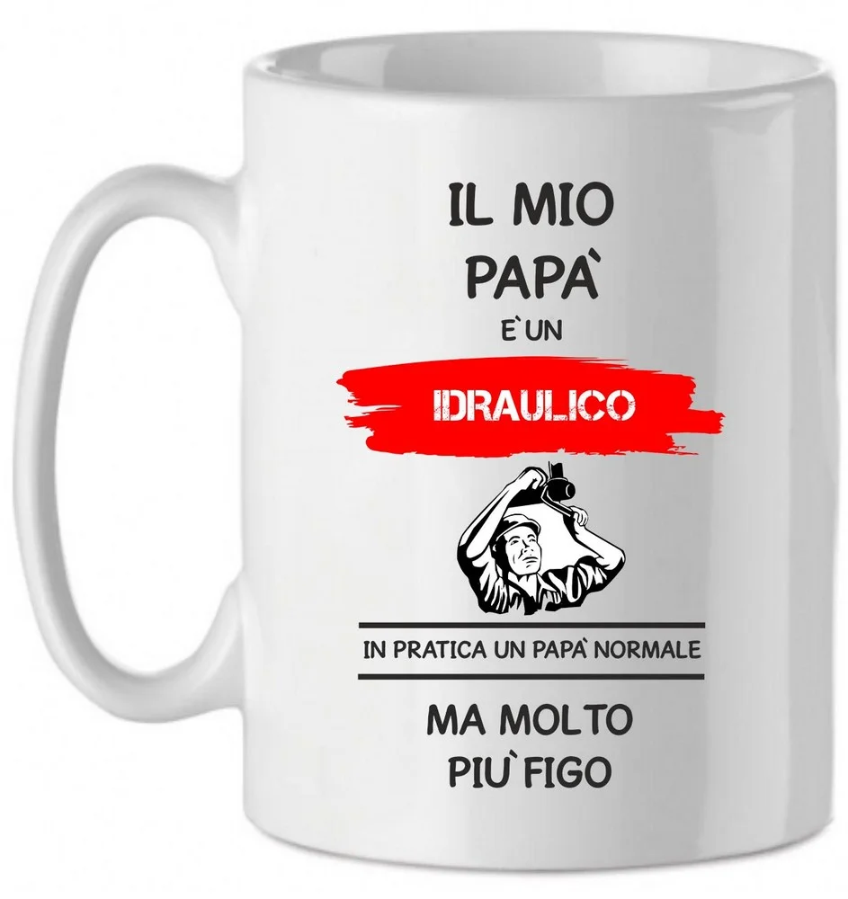 Tazza Mug in Ceramica Festa del papà Il mio papà è un idraulico in pratica un papà normale ma molto più bello – happy father’s day – love – idea regalo