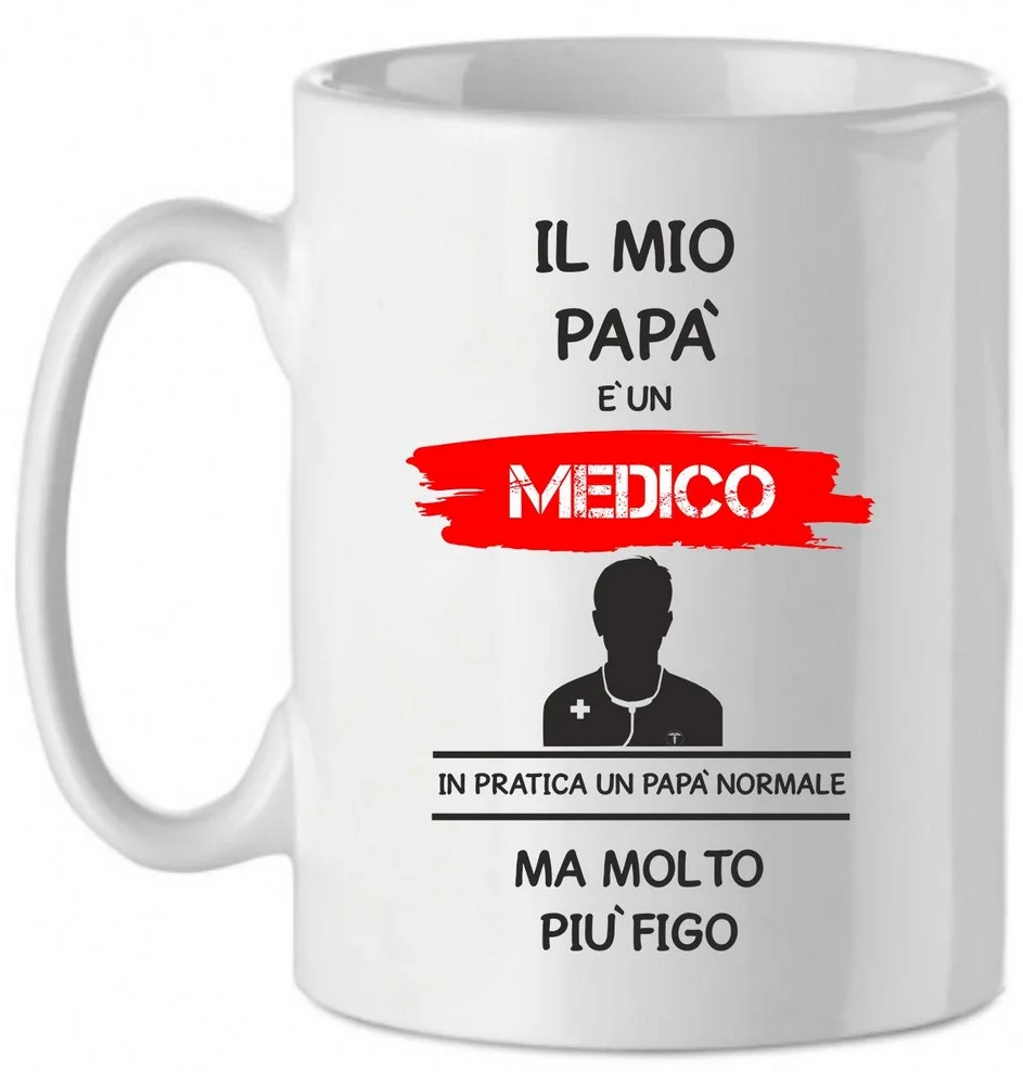 Tazza Mug in Ceramica Festa del papà Il mio papà è un medico in pratica un papà normale ma molto più bello – happy father’s day – love – idea regalo