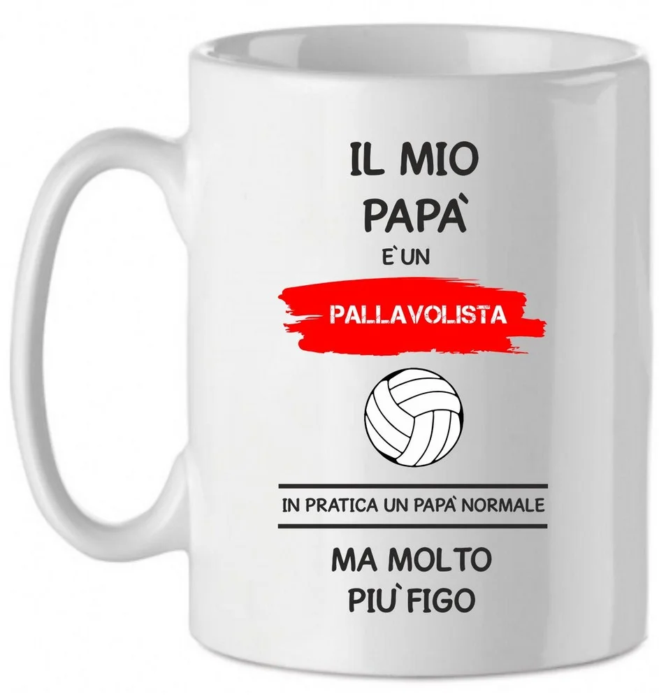 Tazza Mug in Ceramica Festa del papà Il mio papà è un pallavolista in pratica un papà normale ma molto più bello – happy father’s day – love – idea regalo