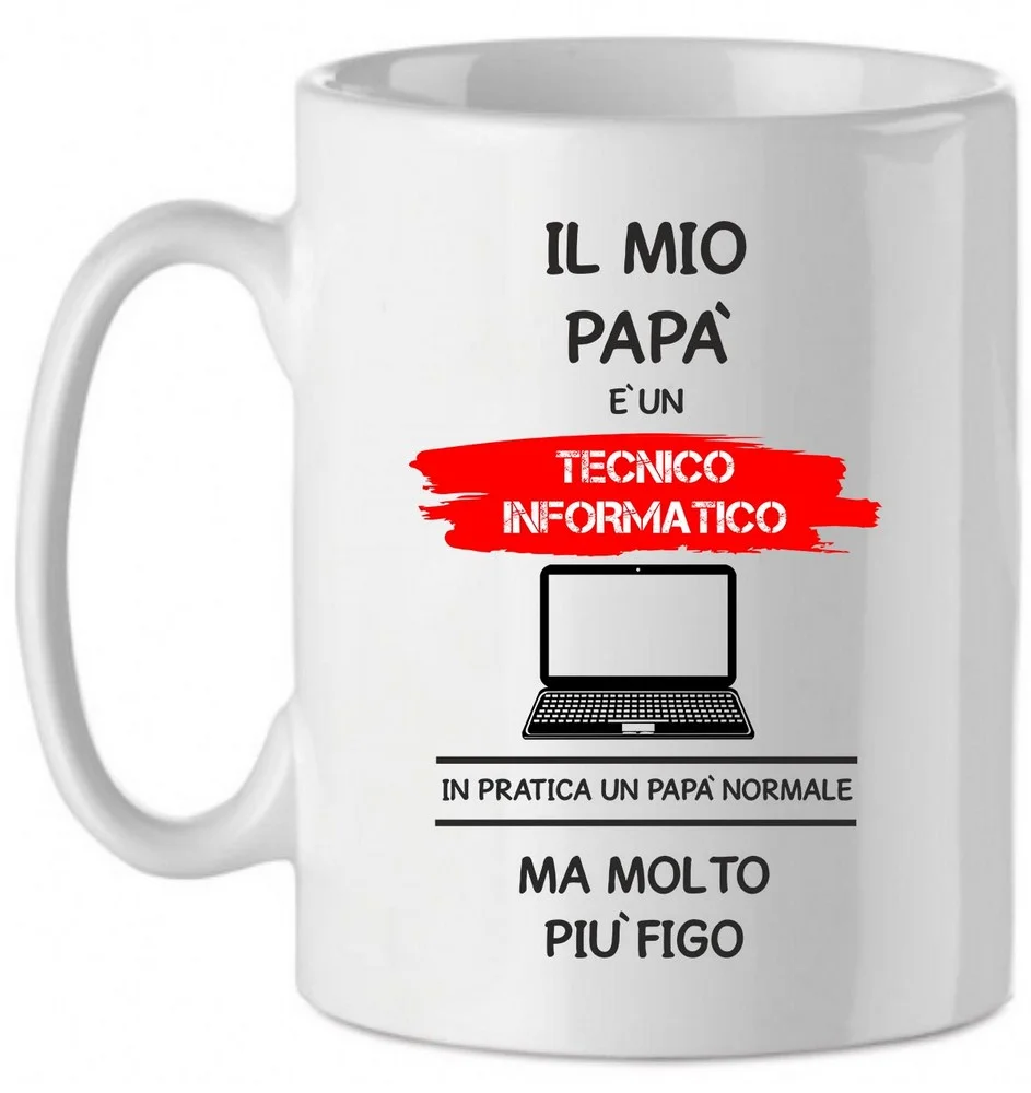 Tazza Mug in Ceramica Festa del papà Il mio papà è un tecnico informatico in pratica un papà normale ma molto più bello – happy father’s day – love – idea regalo