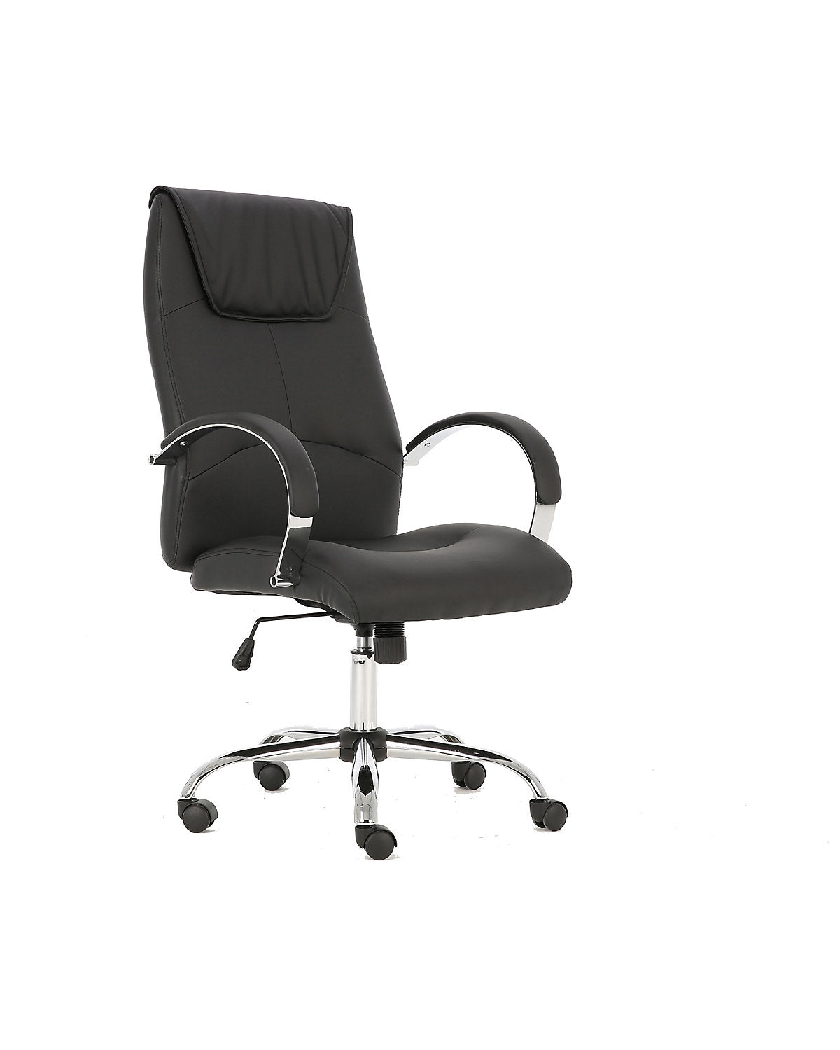 Poltrona da ufficio Teobal regolabile costituita da struttura in metallo cromato, con imbottitura e rivestimento in similpelle che realizza una seduta esteticamente elegante e funzionalmente comoda.