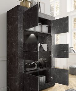 Terry – Vetrina alta 4 ante moderna in legno finitura marmo nero cm 102x43x162h