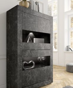 Terry – Vetrina alta 4 ante moderna in legno finitura marmo nero cm 102x43x162h