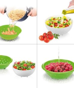 Due prodotti in uno, dalla cucina alla tavola: lo scolatutto è provvisto di una ciotola, così puoi risciacquare frutta e verdura sotto l’acqua corrente e servirle direttamente, senza preoccuparti di sgocciolare, perché l’acqua rimasta sugli alimenti si deposita nella ciotola sottostante e non va in giro.