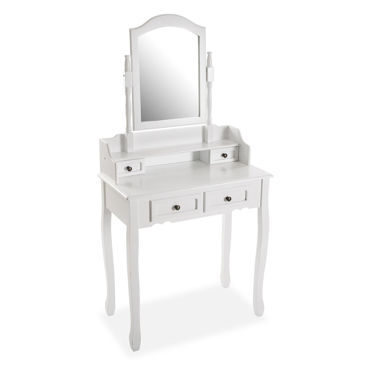 Toilette da camera da letto in legno di colore bianco con 4 cassetti e uno specchio. Realizzata in stile classico. Utile per applicare ii vostri prodotti di bellezza e riporre i vari strumenti.