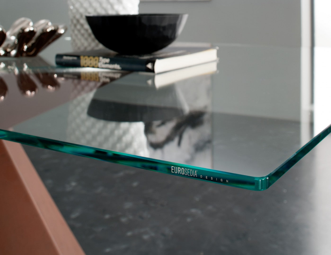 – il piano in vetro è tenuto alle gambe tramite placche elettrosaldate