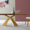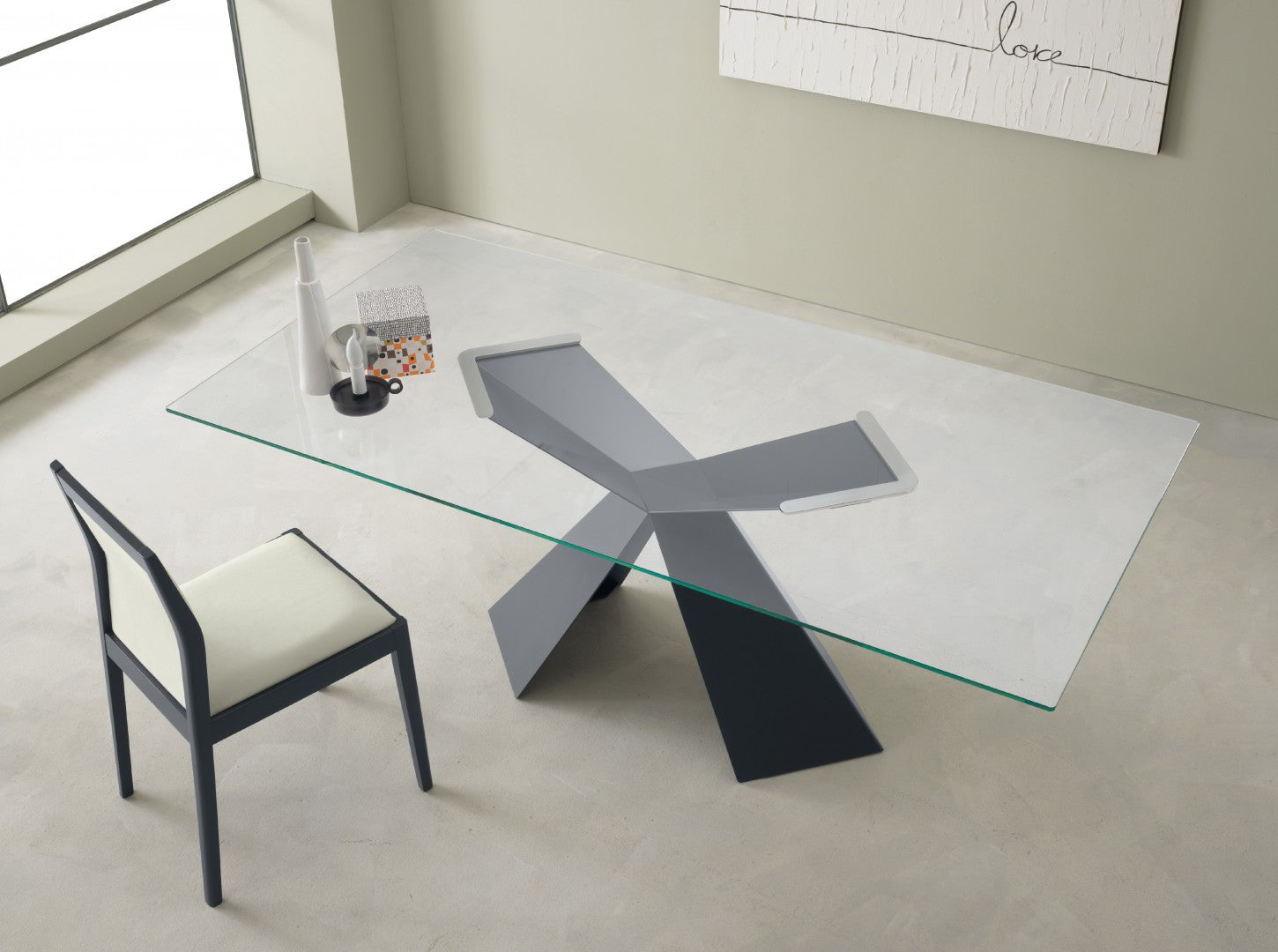 Il tavolo moderno Tokyo si identifica nella spettacolare base in metallo che vista frontalmente appare come una grande X che comprende grosse gambe pensate per sostenere il peso del tavolo e garantire la stabilità dello stesso.