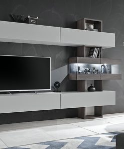 Tokyo – Parete attrezzata moderna mobile soggiorno colore grigio chiaro e cemento con Led