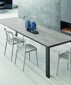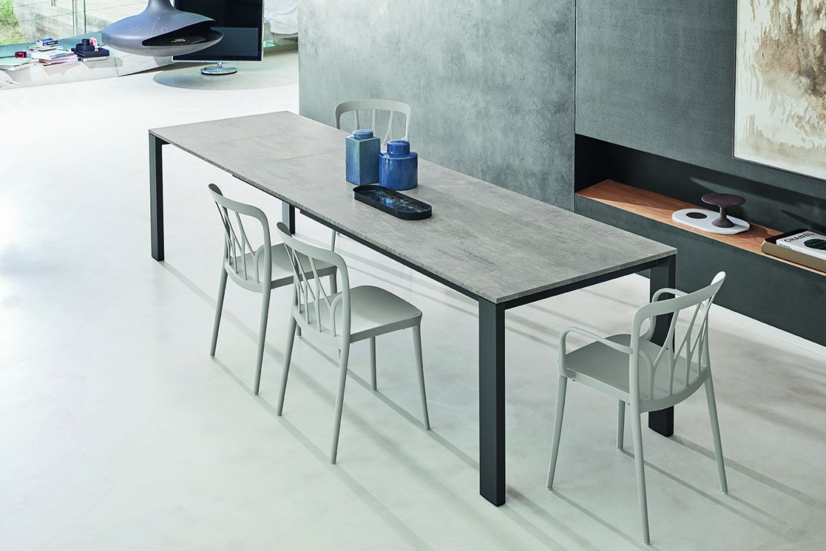 Tavolo da pranzo allungabile Tom Bontempi da cm 160 estensibile fino a cm 319, tramite 3 prolunghe. Il tavolo moderno Tom presenta un design estremamente lineare e sobrio, dove sono i materiali a fare la differenza. Infatti, oltre al colore della struttura in acciaio, potrai scegliere tra vari materiali per il piano, come legno, cristallo, oppure melaminico materico, superceramica, supermarmo, materiali quest’ultimi, innovativi e resistenti.