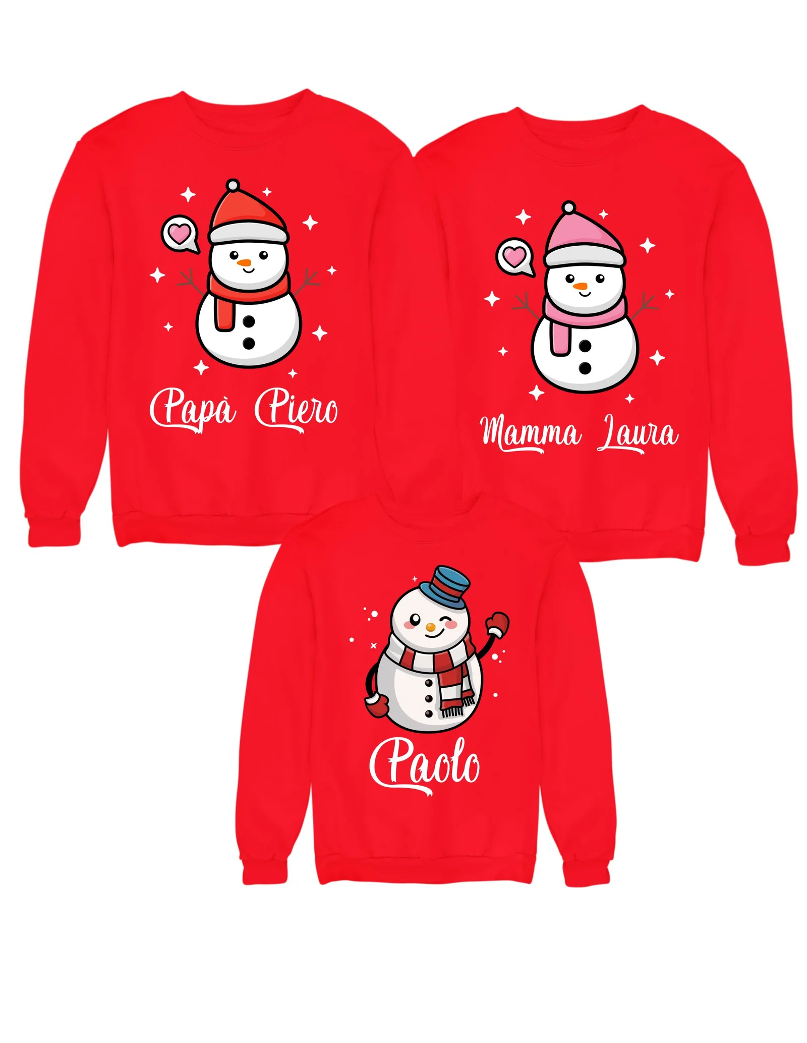 Tris Felpe Girocollo Famiglia Personalizzabili con Nome: Idea Regalo divertente, unico e originale per festeggiare il Natale in Famiglia.