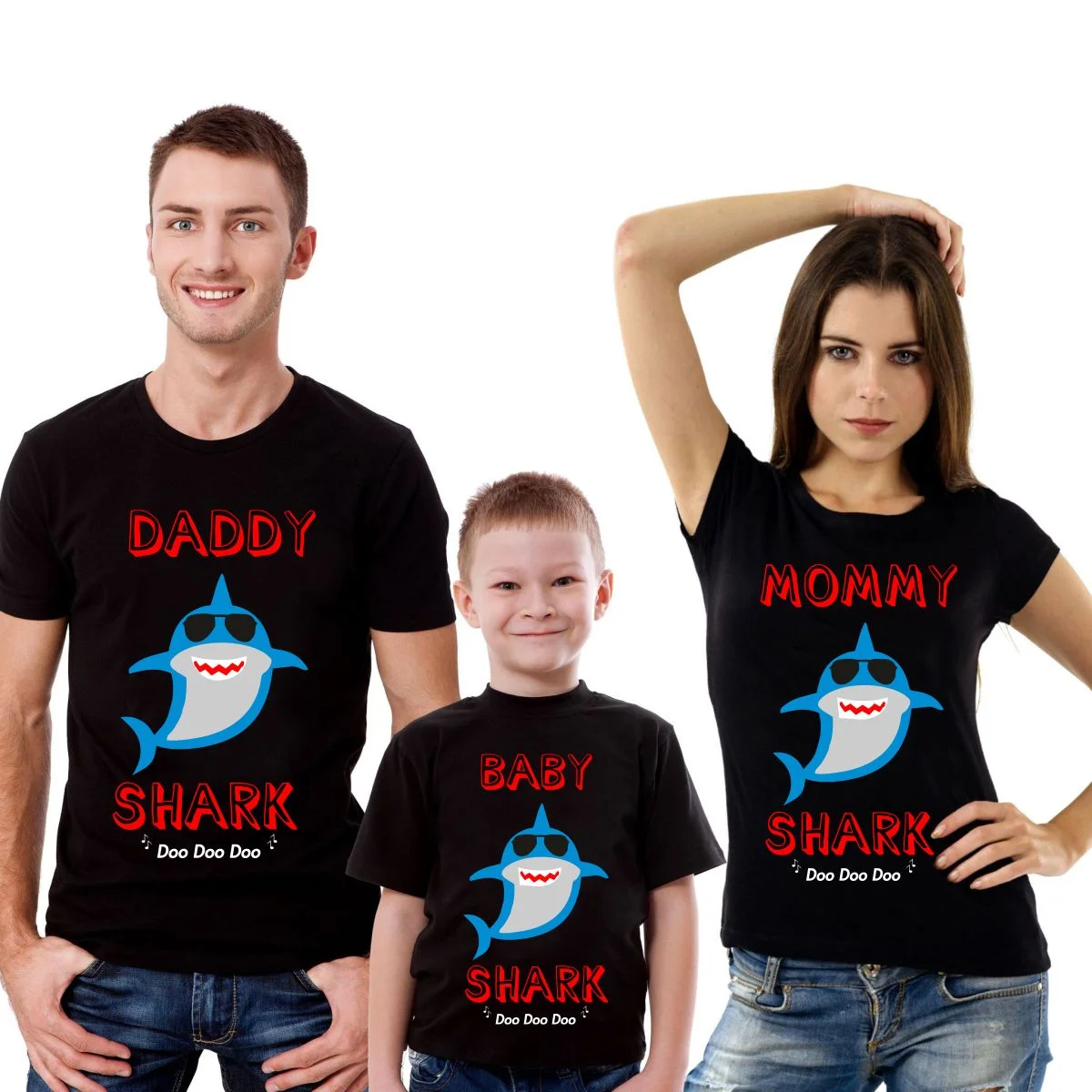 Tris T-Shirt Famiglia madre, padre, figlio Daddy Shark, Mommy Shark, Baby Shark – festa del papa’ – festa della mamma – magliette divertenti per tutta la famiglia – idea regalo