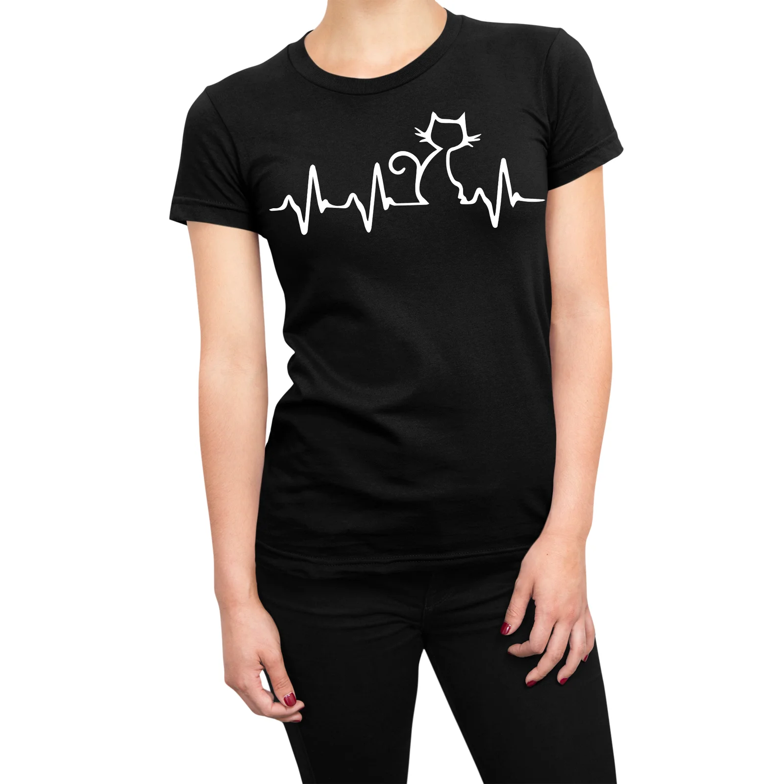 Tshirt gatto donna gatto cat ecg – elettrocardiogramma gatto – maglietta divertente donna – cat