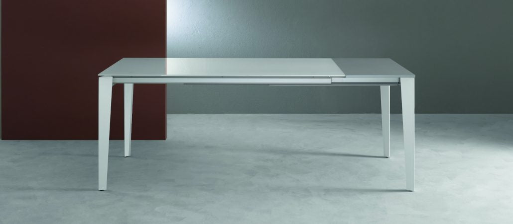 Tavolo moderno Uniko Eurosedia con gambe in metallo e piano in nobilitato, laminato, vetro o gres. Il tavolo design presenta dimensioni 120×85 cm allungabile con due allunghe fino a cm 210. L’ampia gamma di finiture disponibili offre la possibilità di creare il proprio accostamento ideale tra struttura e piano.