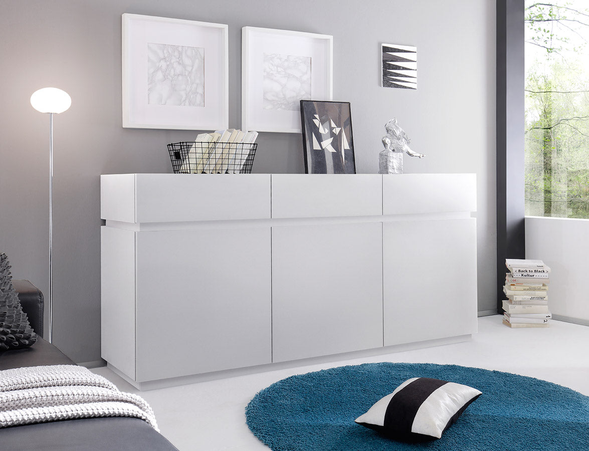 Stupenda madia moderna Vandella, affascinante per chi apprezza l’essenzialità delle forme, valorizzata da piccoli dettagli. Vendella infatti, presenta un frontale lineare e semplice con 3 ante e 3 cassetti rigorosamente senza maniglia, come vuole che sia questo genere di stile minimale, ma dotata di pratiche maniglie a gola.
