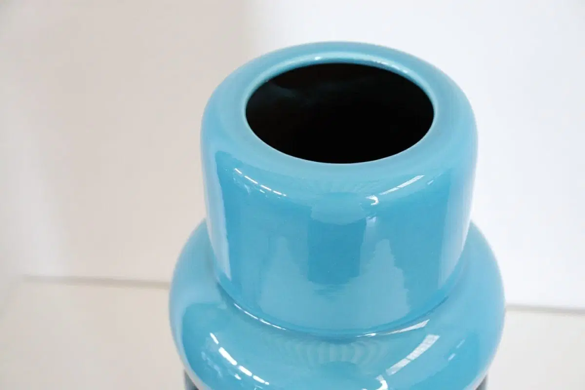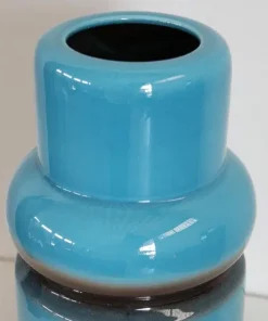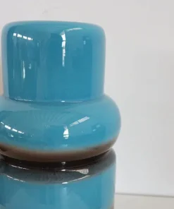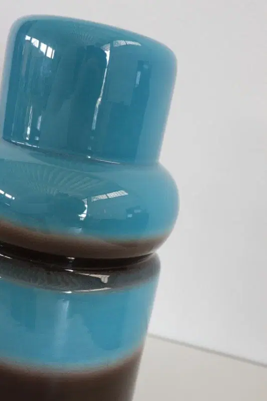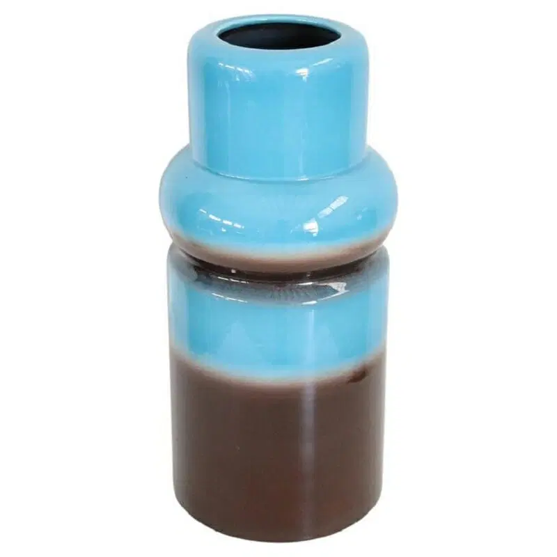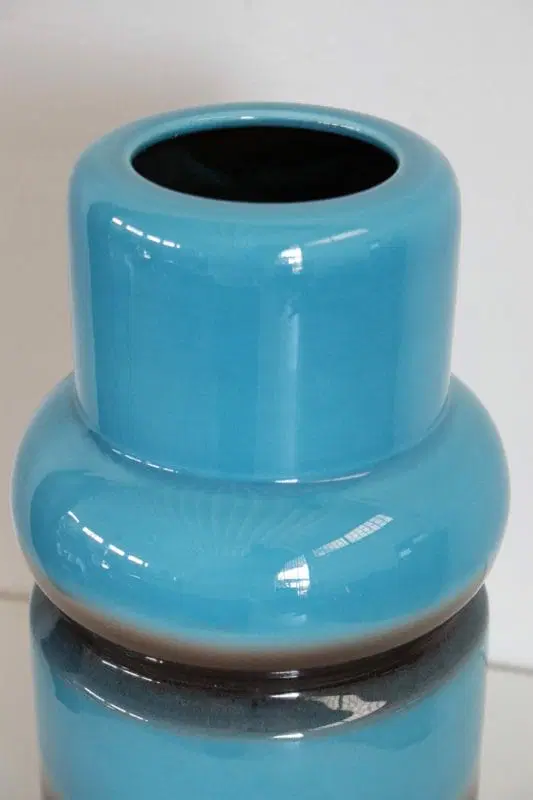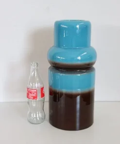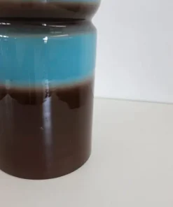 Vaso artistico in ceramica blu e marrone, anni ’70