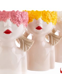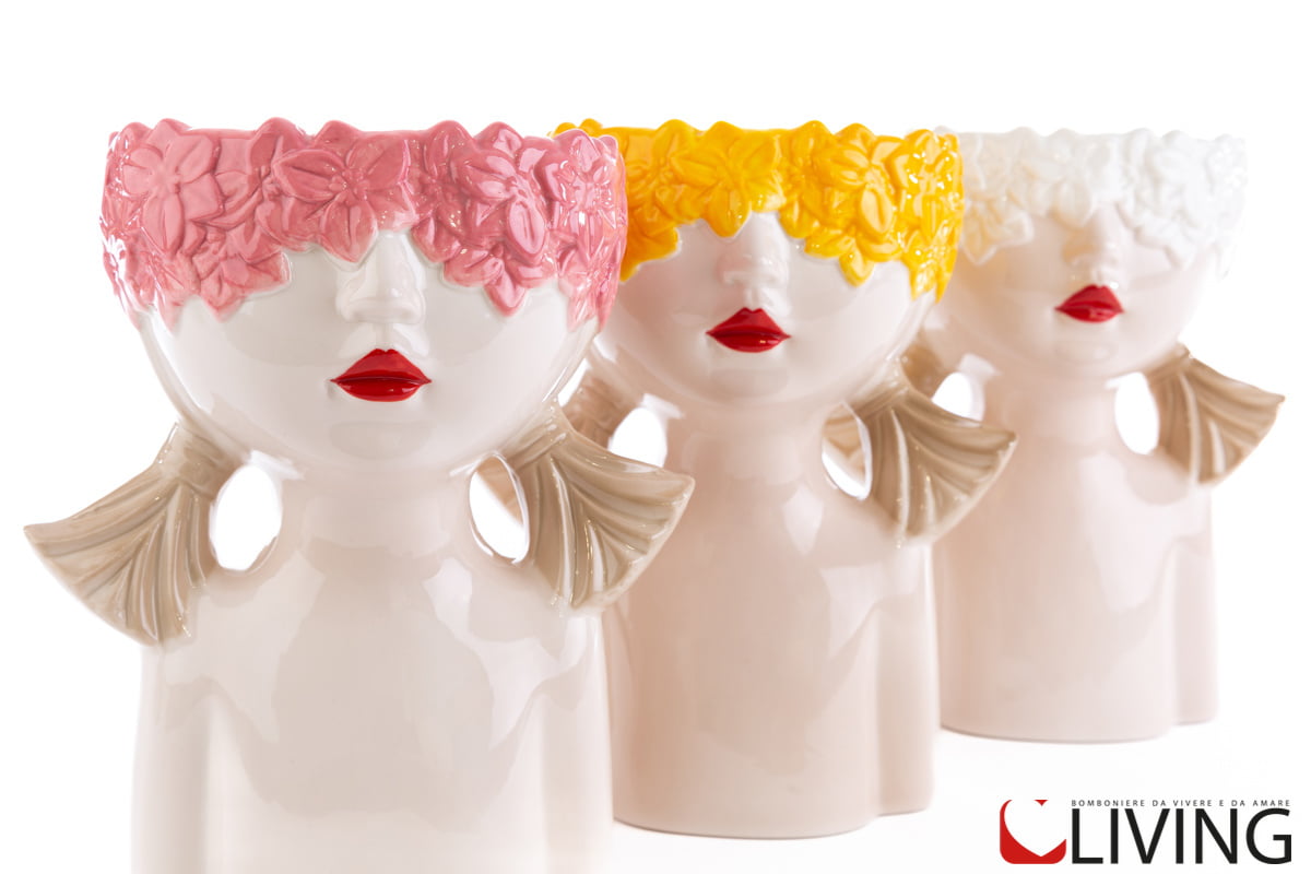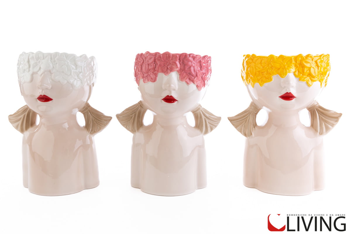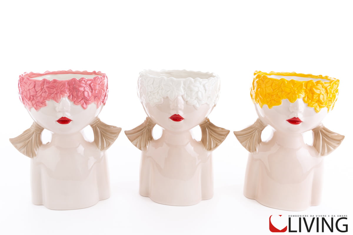 Porta piantina busto bimba dea bendata in porcellana colorata, assortiti in 3 colori.
