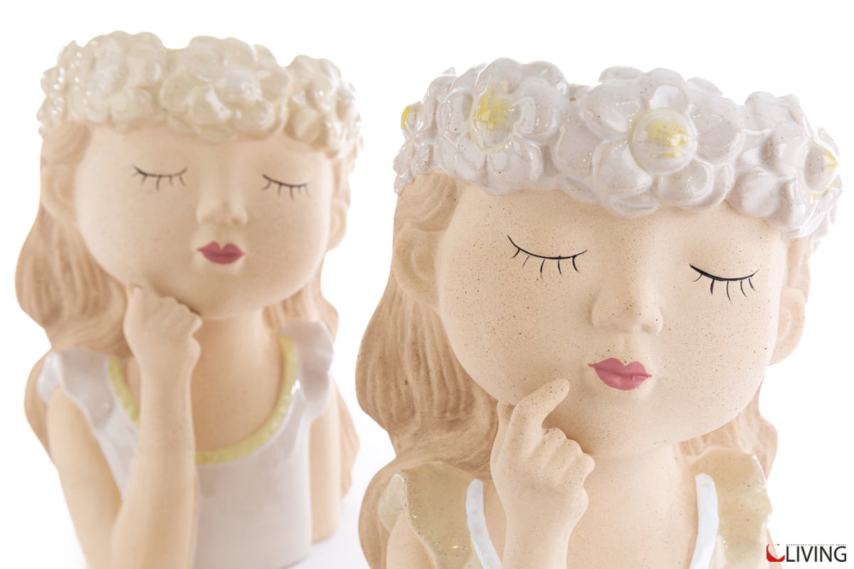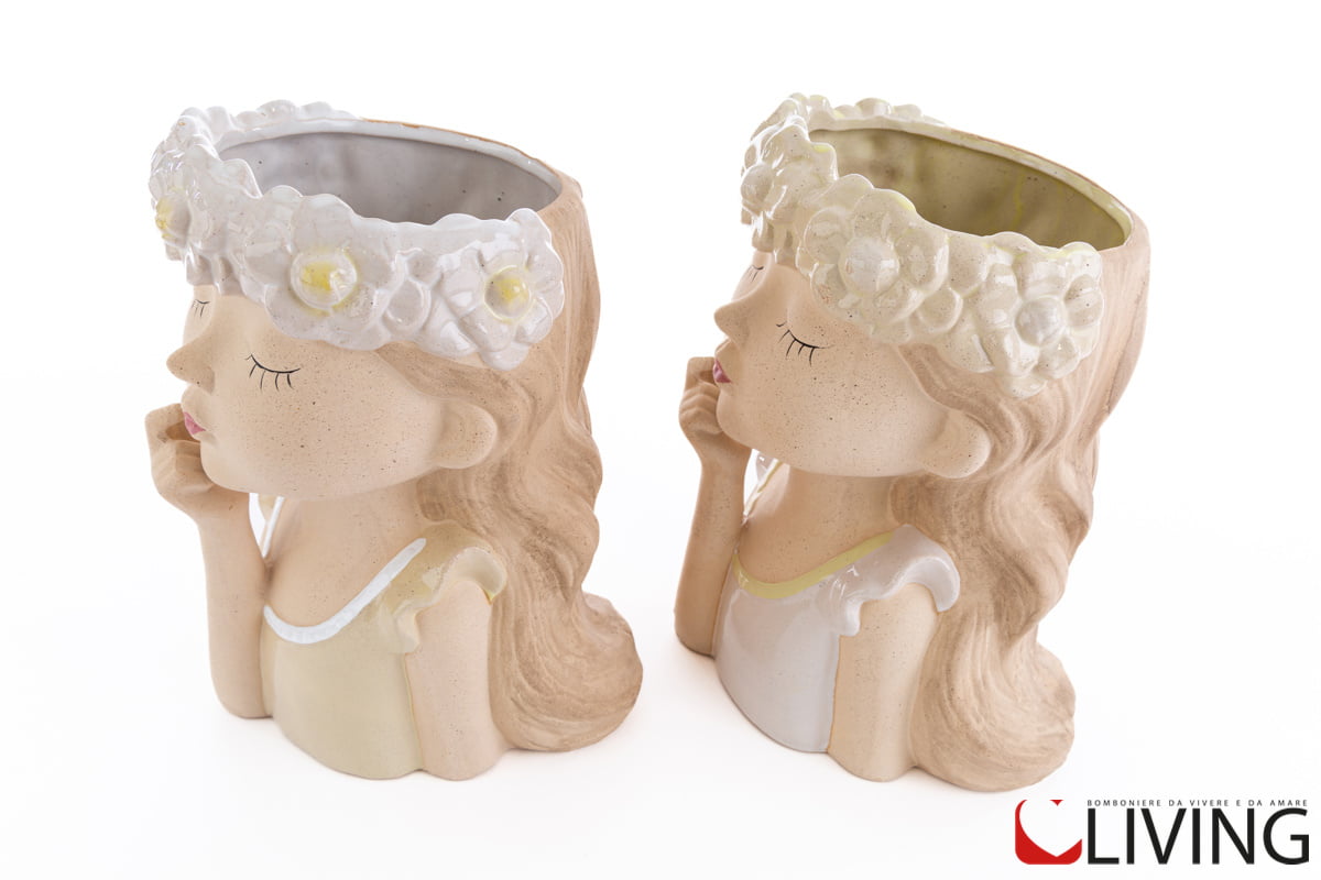 Vaso porta piantine in ceramica sagoma bimba. 2 modelli assortiti.