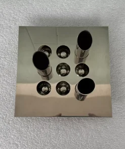 Misure: 20 cm x 20 cm e 2 cm di altezza (misura 11 cm di altezza inclusi i cilindri inseriti)