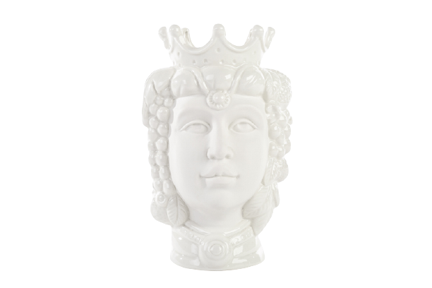 Bomboniera tipica Siciliana Vaso testa di moro donna in porcellana bianca.