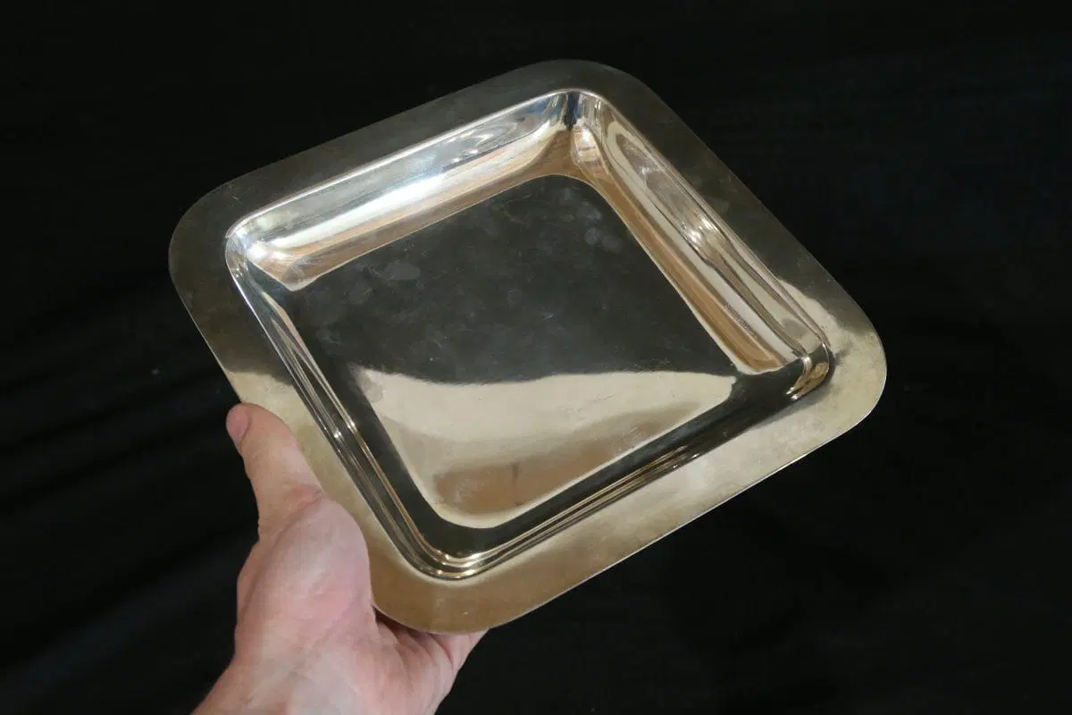 vassoio argento Zaramella Padova argento 800 antico anni 60 quadrato 427 grammi