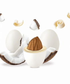 Mandorla tostata ricoperta da cioccolato bianco ai gusti assortiti di frutta (fragola, arancia, yogurt ai frutti di bosco, pistacchio e limone) e da un sottile strato di zucchero.