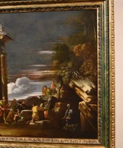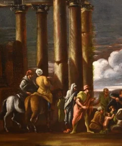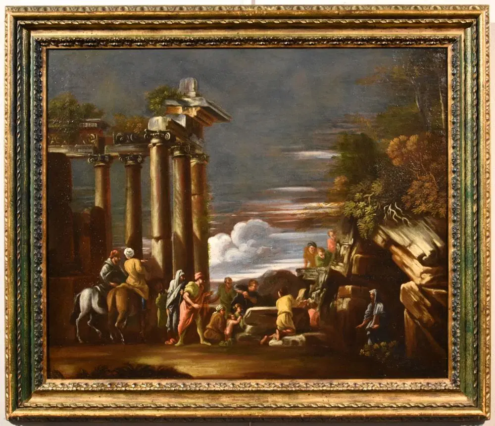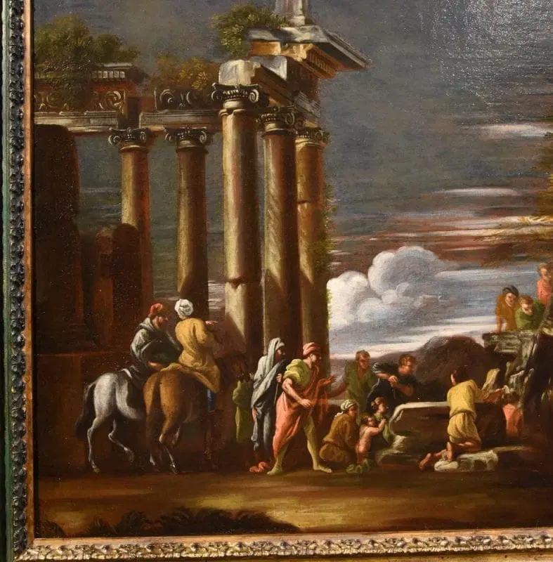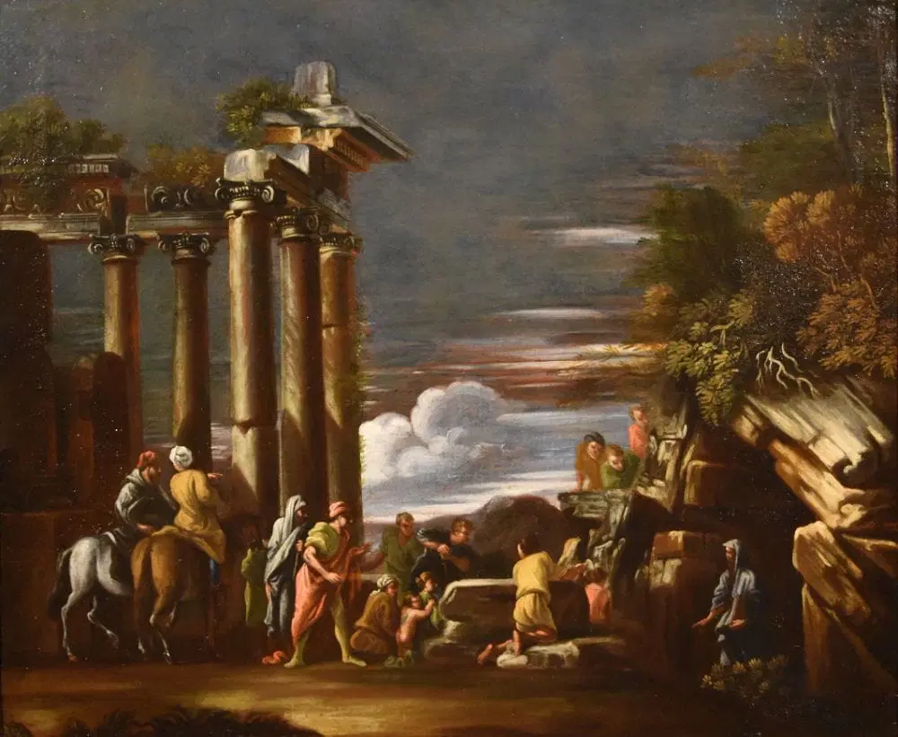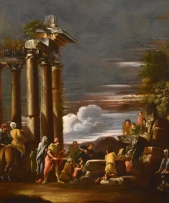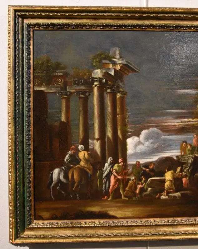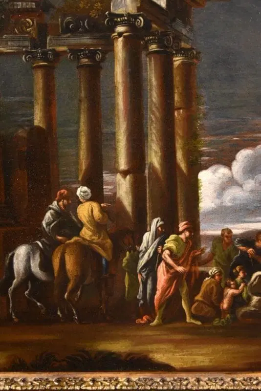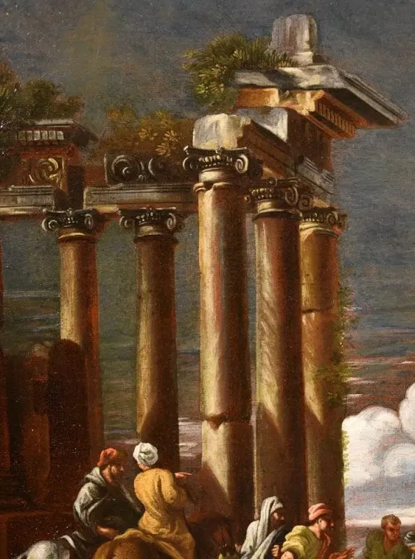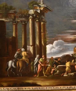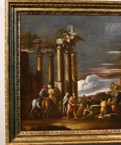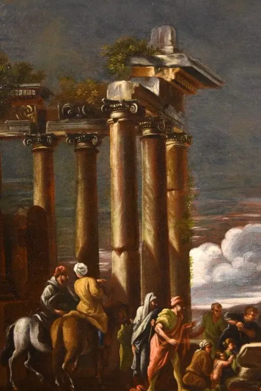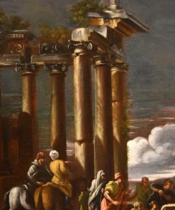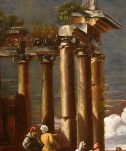 Il quadro costituisce una buona testimonianza del ‘rovinismo’ di taglio classicista del Ghisolfi, ed in particolare della sua fase matura, caratterizzata da costruzioni orchestrate con misurato e sapiente equilibrio. Si tratta dello stile pittorico più morbido e libero del pittore di origini lombarde, che deve molto all’influenza di Salvator Rosa, con il quale fu intimo amico durante il suo soggiorno romano negli anni Cinquanta del Seicento.