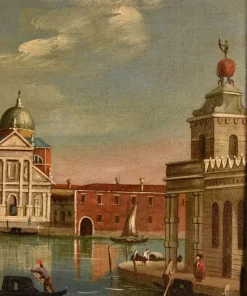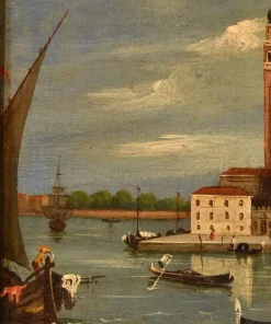 Ben eseguita, contraddistinta da una tavolozza dalle tonalità vivaci e da un morbido gioco chiaroscurale risaltato da una piacevole luminosità, la tela – eseguita nel XIX secolo – è un’interessante evocazione del raffinato vedutismo veneziano.