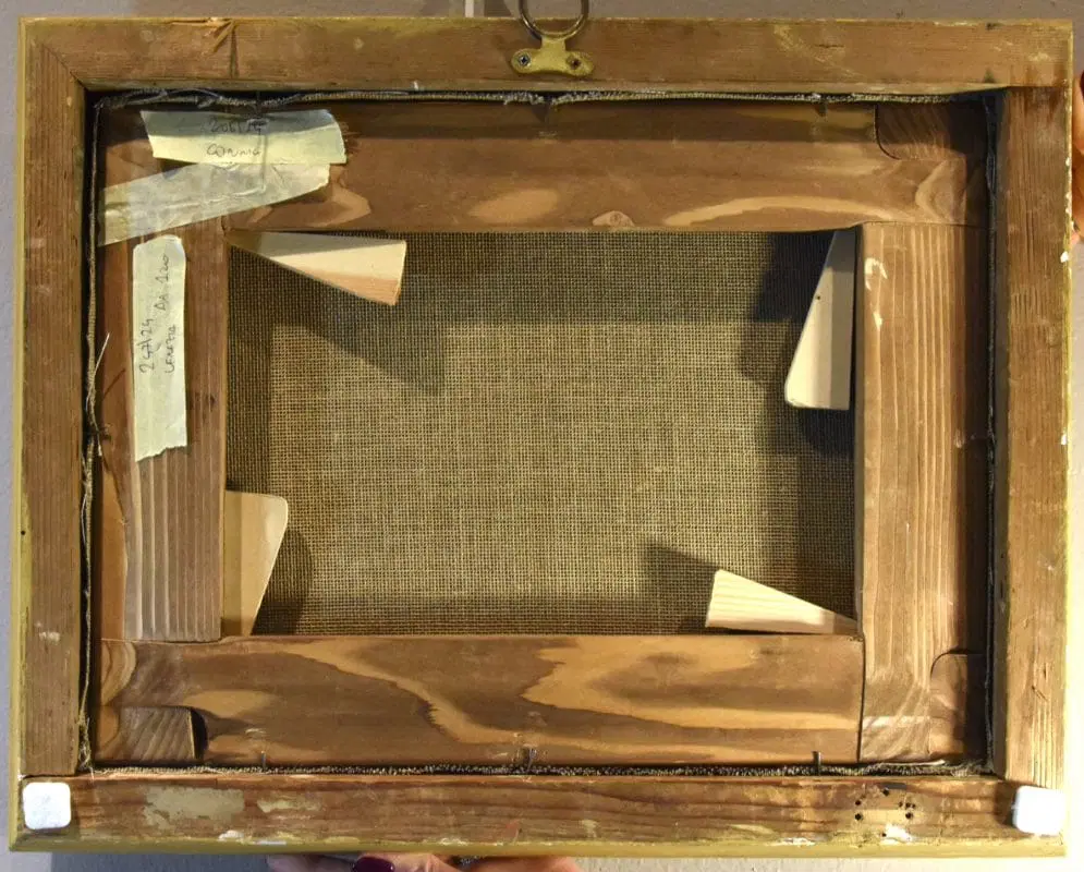 L’opera viene venduta completa da una piacevole cornice in legno dorato ed è corredata di certificato di autenticità e scheda iconografica descrittiva.