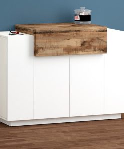 Mobile scarpiera in legno, colore bianco lucido. La struttura è dotata di 2 ante e una a ribalta, quest’ultima a scelta tra il colore ossido o pero. Dal design moderno, questa scarpiera è perfetta per chi ama arredare la propria casa con classe e raffinatezza. Un prodotto al 100% Made in Italy.